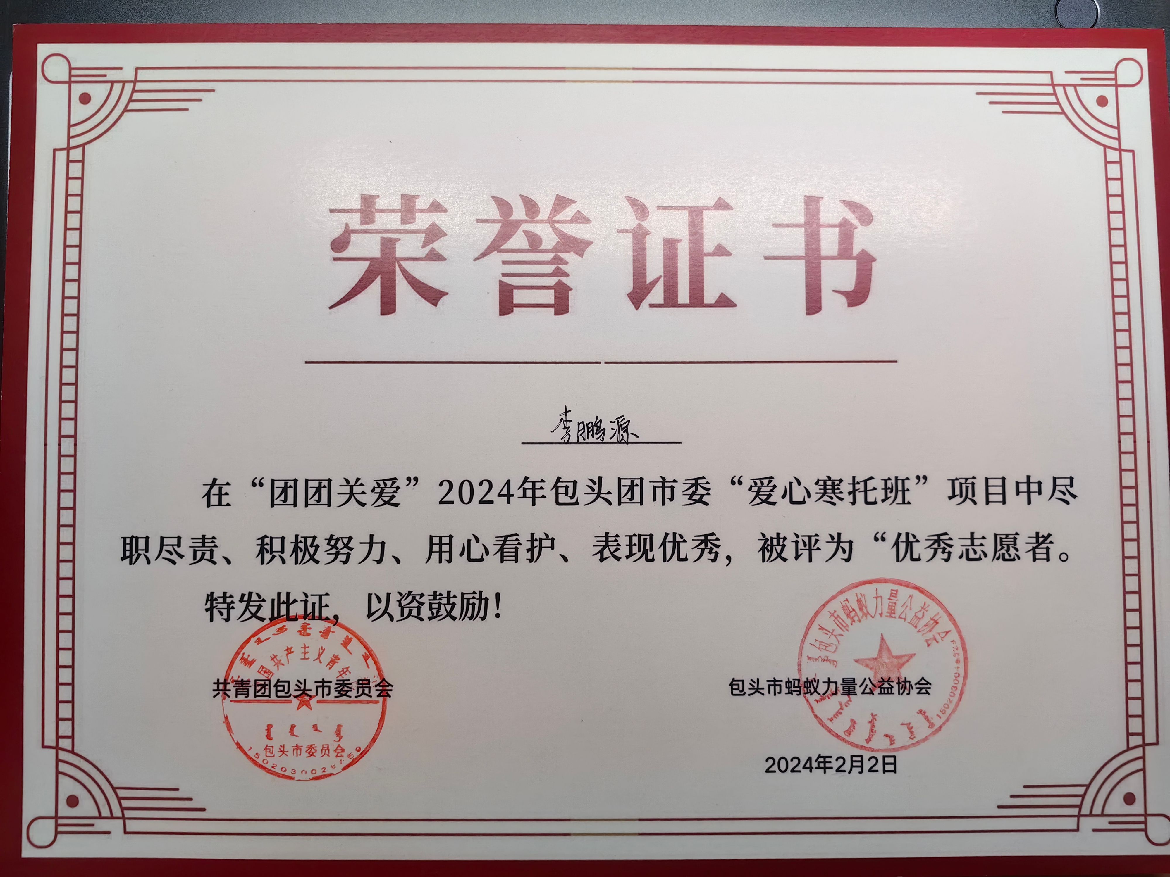 李鹏源在学习与实践的同时也要求自己努力做到德、智、体、美、劳全面发展。在生活中热爱探索与运动,目前已成为中国探险协会星级成员,国家二级户外山地运动教练员,考取了国家一级、二级山地户外运动技能证书,他也希望在未来的学习中脚踏实地,步步前行,像户外徒步一样总有美好的风景值得期待,总有更高的山峰等待着你去挑战!