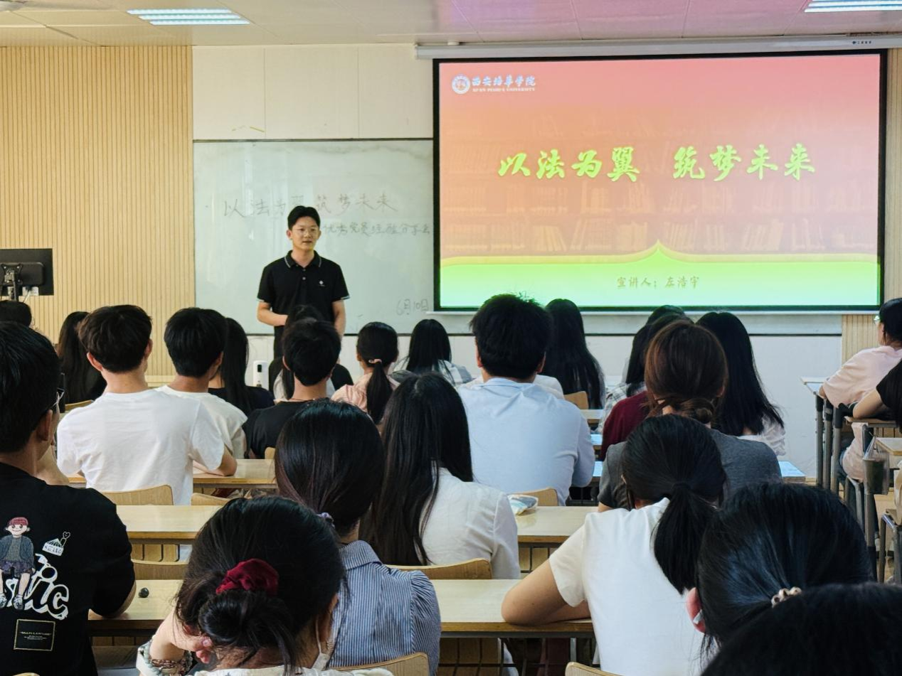 在分享的最后他倡议:“作为法学生,我们肩负着维护公正、守护法治的重任。在求知的路上,愿你们不忘初心,矢志不渝,将法律视为信仰,深植于心”。展望未来,他鼓励青年学子坚定信念、勇于担当,把所学知识转化为热情,投身法治社会建设,贡献自身力量。他寄望同学们成长为有高尚理想、优秀道德、强烈担当,兼备深厚专业素养与扎实实践能力的复合型高素质法律人才。
