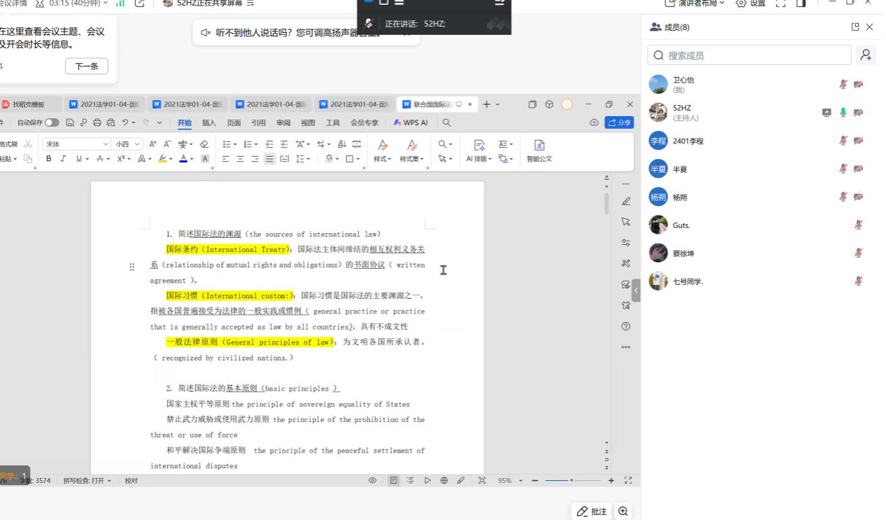 赛前由学院组织安排,赵彦红老师、裴文杰老师和王蕾老师积极动员学生参赛。我校代表队由公法教研室主任李倩担任负责人,法学院教师卫心怡、张惜冰、陆凌秀担任赛事指导老师。三位指导老师分别就竞赛相关知识为学生展开线下线上的多种方式的培训,通过双语教学为学生提供了多次针对性辅导并提供了多样化的辅助资料。