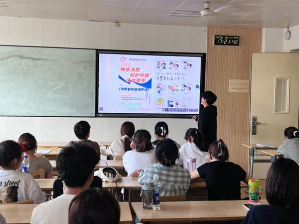 本学期,该课程首次在2024级法学(专升本)8个班级教学实施,为期4周(含寒假2周)。课程核心环节由教师指导、学生主导、分组进行,通过宣传主题选定、策划方案撰写、小组课堂汇报及匿名优选投票等环节,最终14个优秀小组进入学生社区实地宣传阶段。选题聚焦交通安全、消费者权益保护、反对校园暴力、“帮信罪”宣传普及等与大学生生活紧密相关的法律主题。