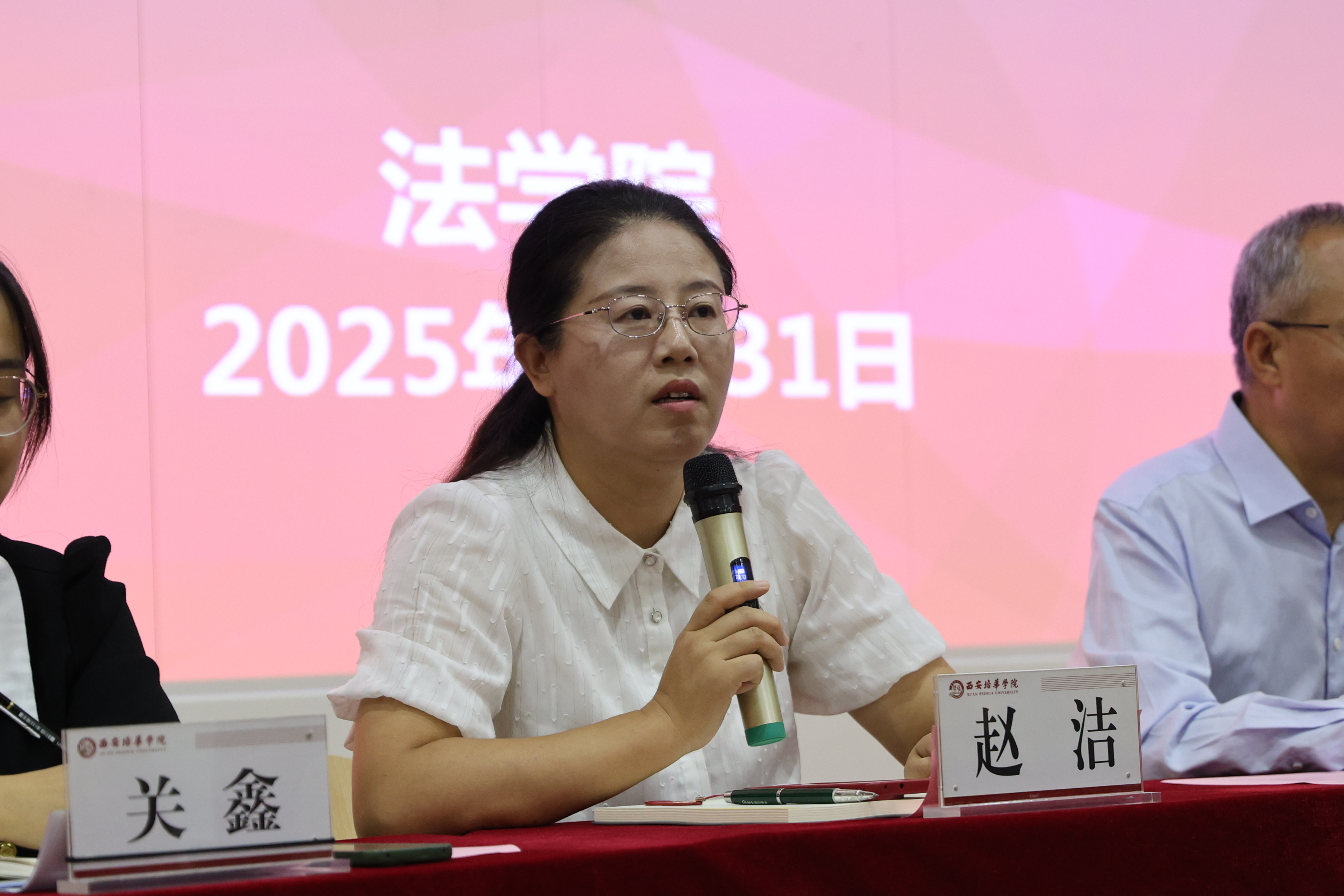 院长助理高燕则就科研能力培养与对外合作项目作了说明,包括学术竞赛、校企合作、实习基地建设以及国际交流机会等内容,培养具有创新能力和国际视野的高素质法治人才。