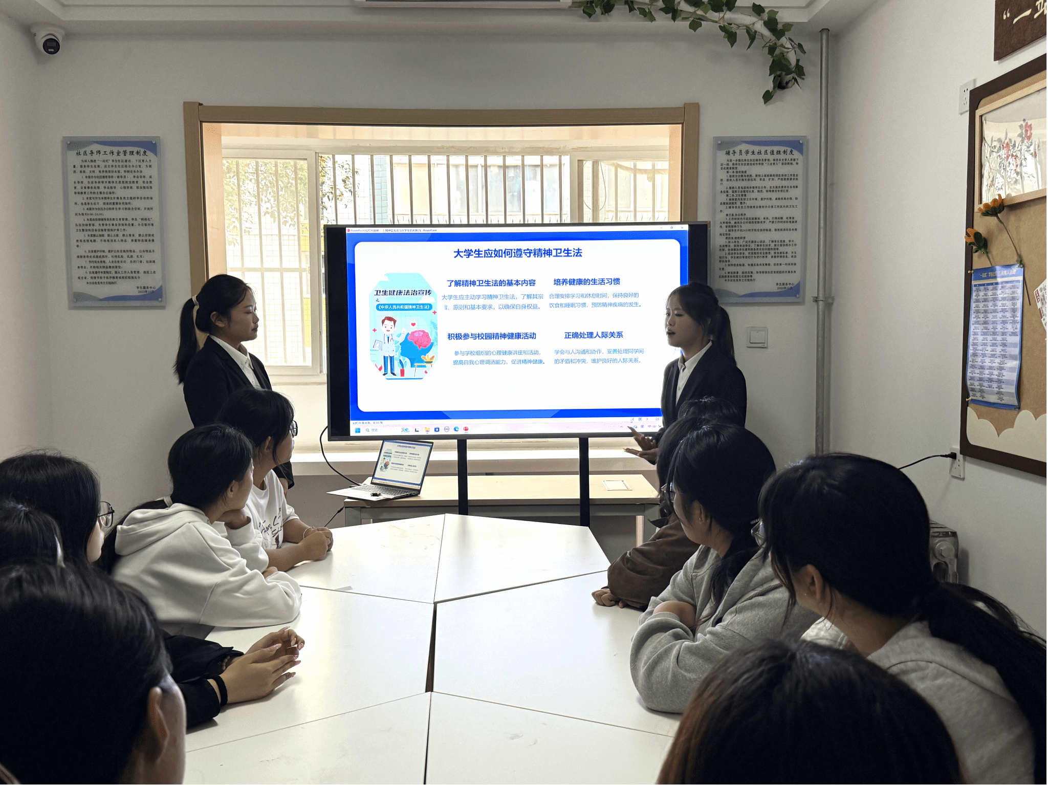 2025年10月10日中午,习近平法治思想宣讲团在明德社区3号楼开展“共读精神卫生法,守卫阳光每一天”主题宣讲活动,聚焦《中华人民共和国精神卫生法》,为大学生筑牢法治与心灵防护网。