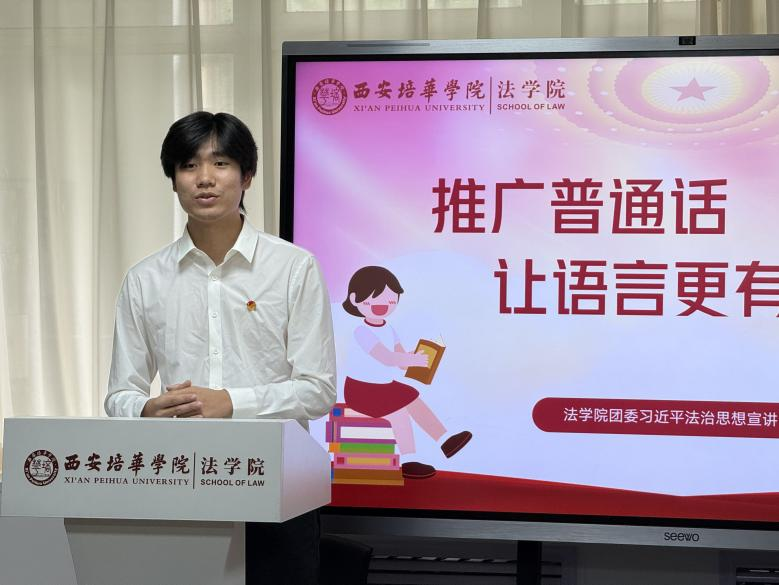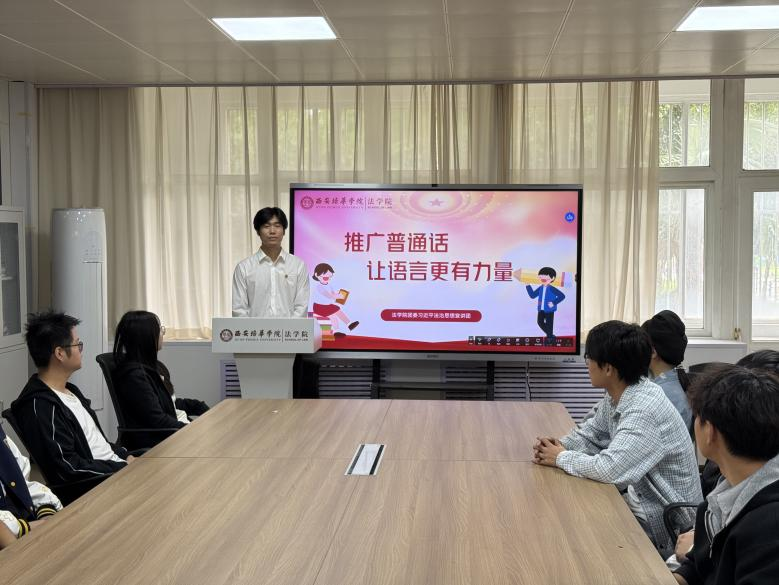 为进一步铸牢中华民族共同体意识,加大国家通用语言文字推广力度,9月16日上午,法学院团委习近平法治思想宣讲团在格物楼1116开展了一场“推广普通话,让语言更有力量”的宣讲活动。活动通过宣传与互动结合的形式,引导学生讲好普通话,写好中国字。