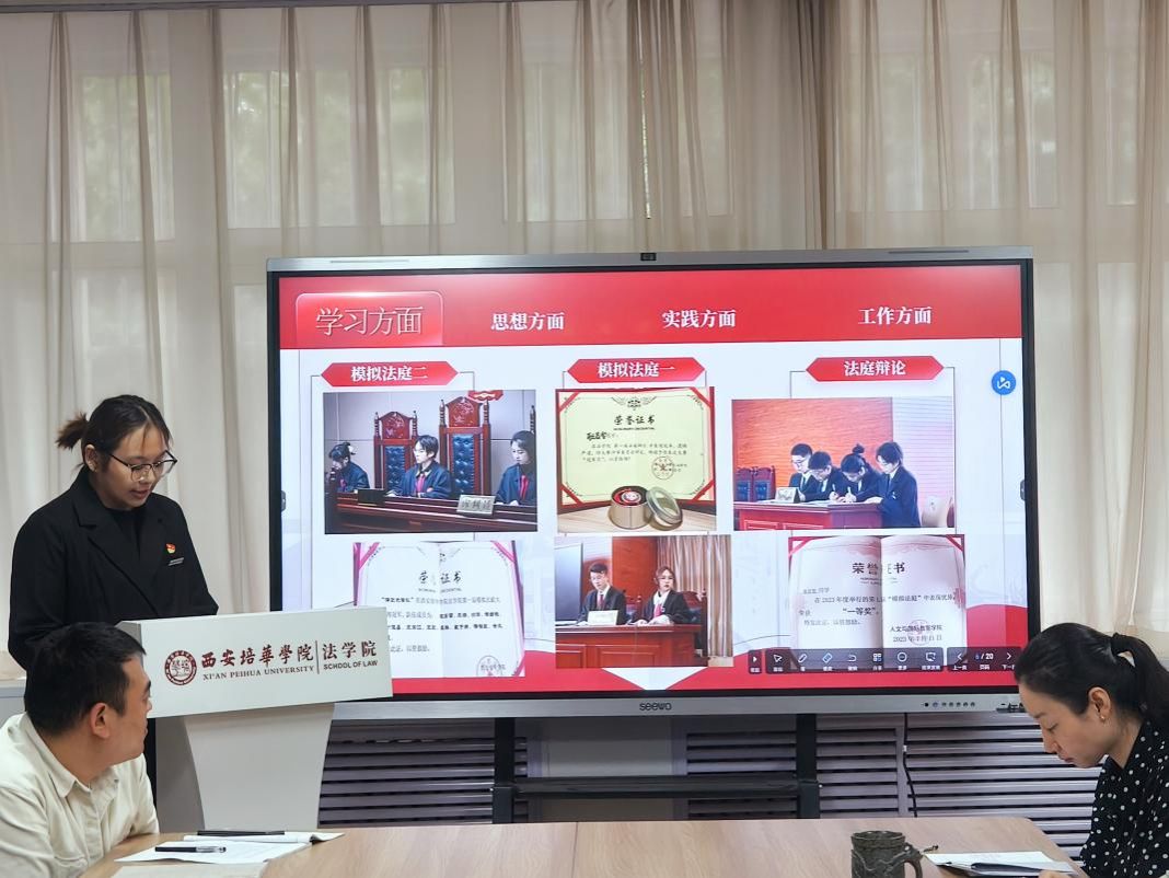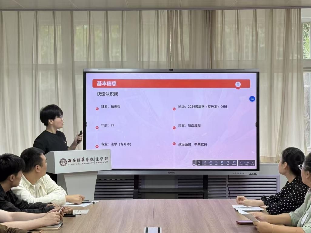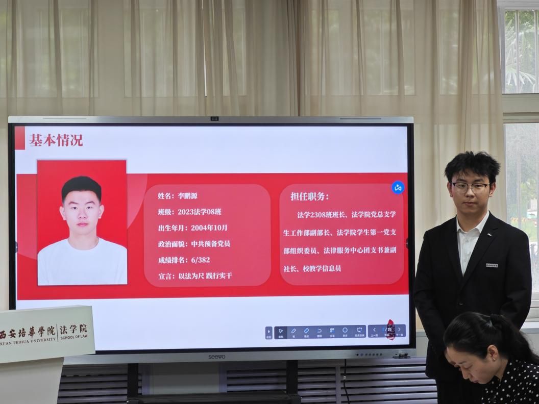 经过答辩和评审环节,最终会议决定推选2024法学(专升本)04班王涵、2022法学02班敬若雪、2023法学08班李鹏源、2022法学04班倪倩晶四名同学参与校级评选。