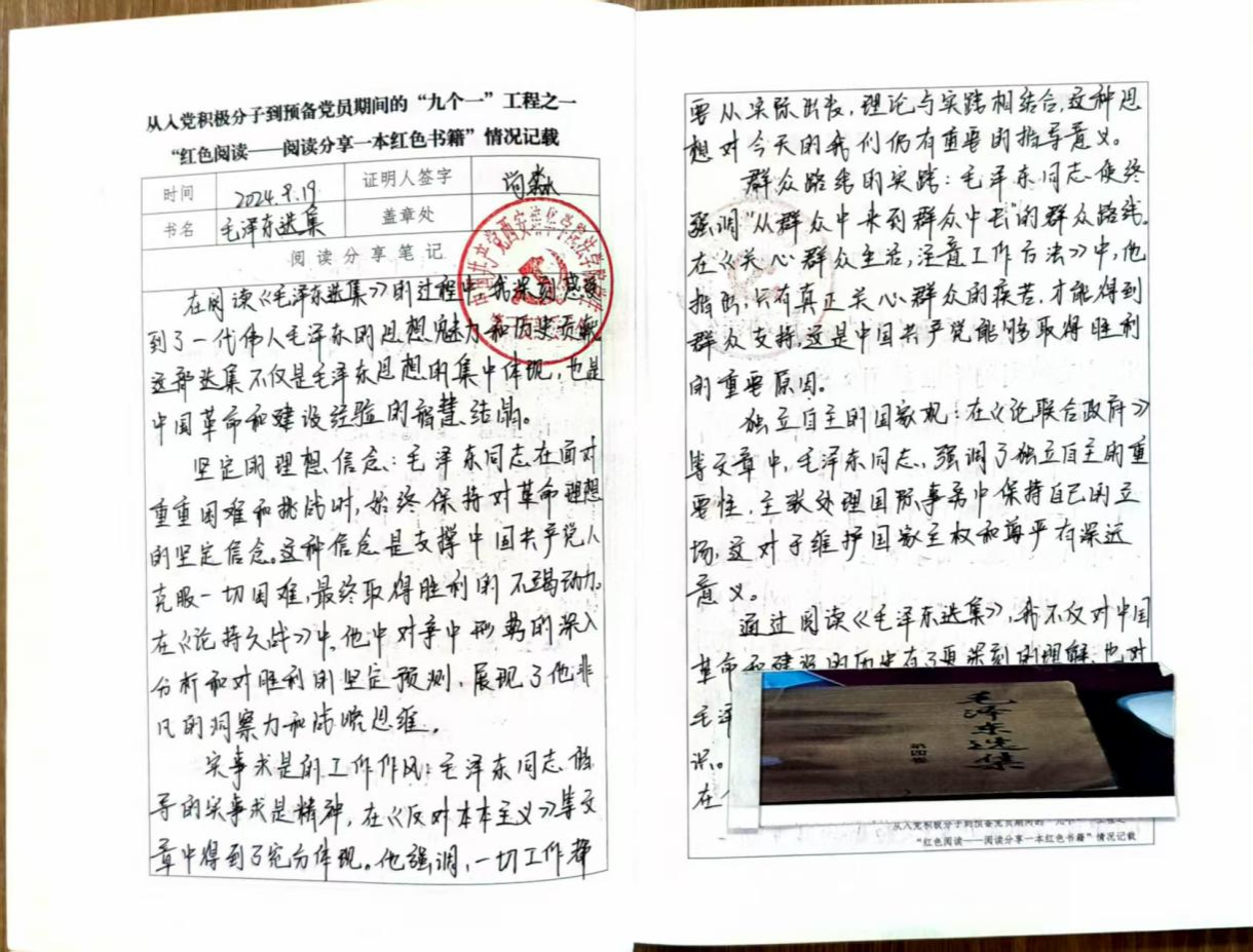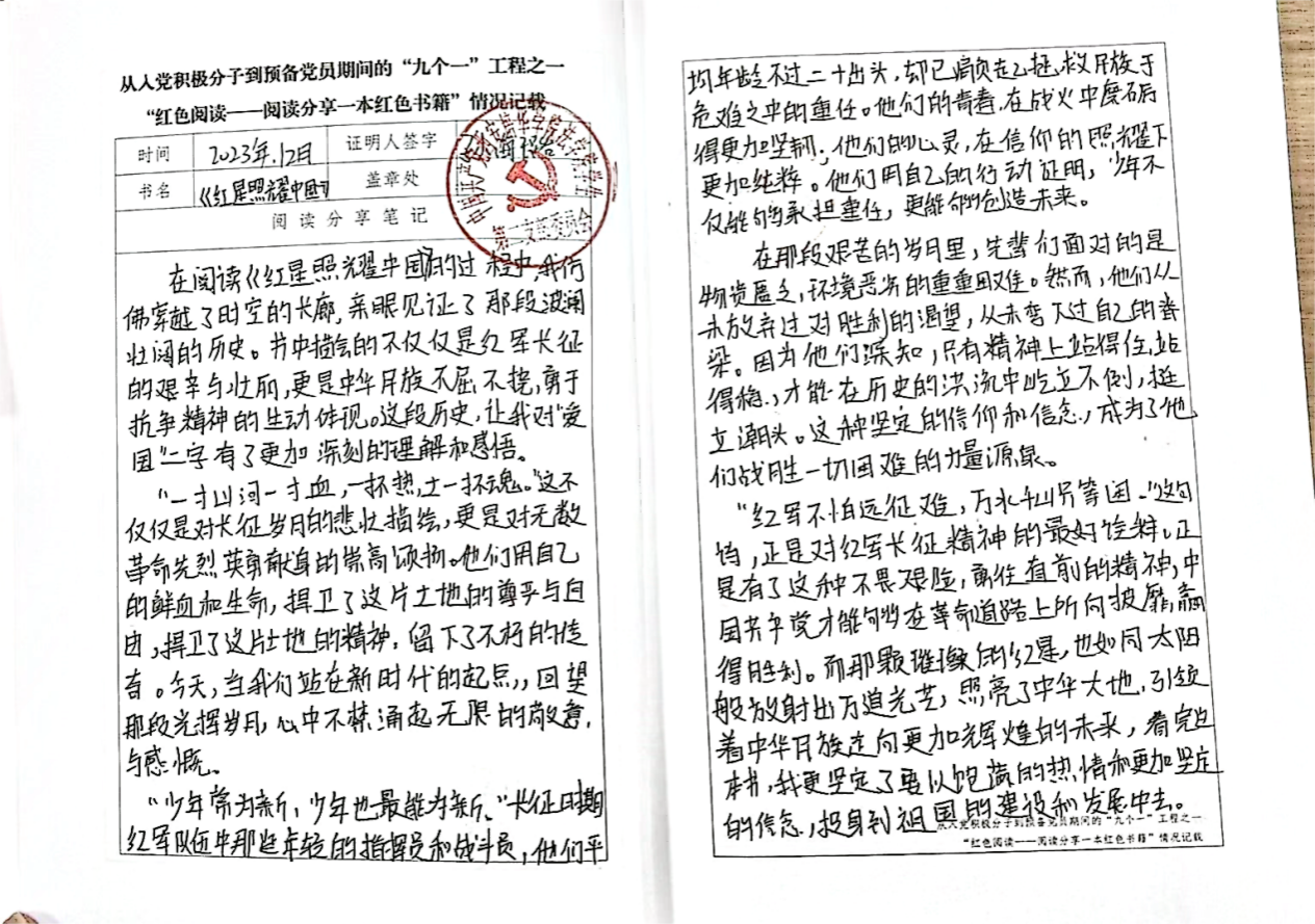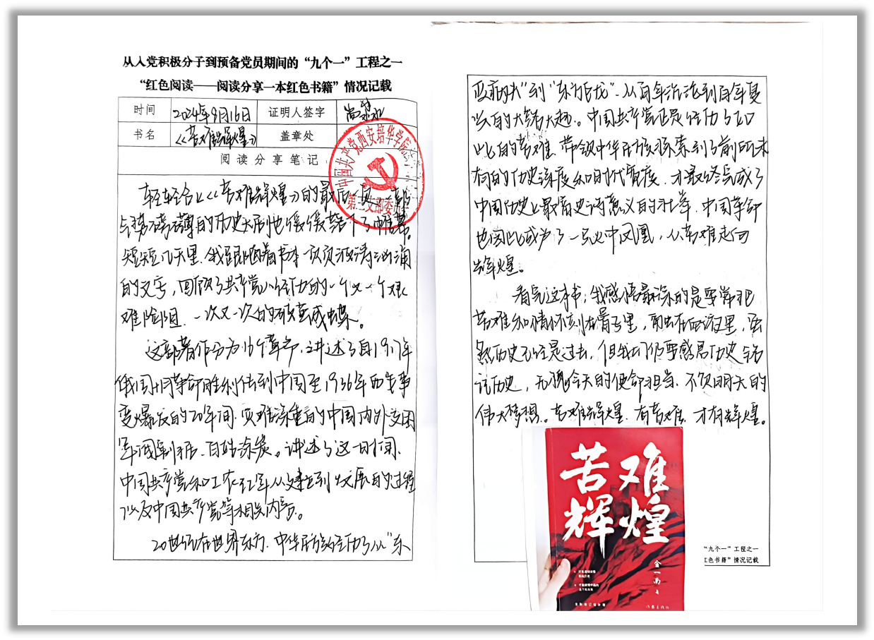 为深入贯彻落实新时代党员教育培养要求,法学院党总支以"九个一"工程为引领,聚焦入党积极分子思想淬炼与政治素养提升,通过构建"专题学习+实践感悟+成果沉淀"的全链条培养体系,组织全体积极分子、发展对象和党员开展沉浸式红色经典研读活动。红色阅读篇书写通过引导青年学子从红色经典中汲取信仰力量,在书香浸润中筑牢理想信念根基,着力培养"有理想、敢担当、能吃苦、肯奋斗"的新时代青年马克思主义者,为法治中国建设培育有灵魂、有担当的先锋力量。让我们一同领略这些优秀篇章的风采!