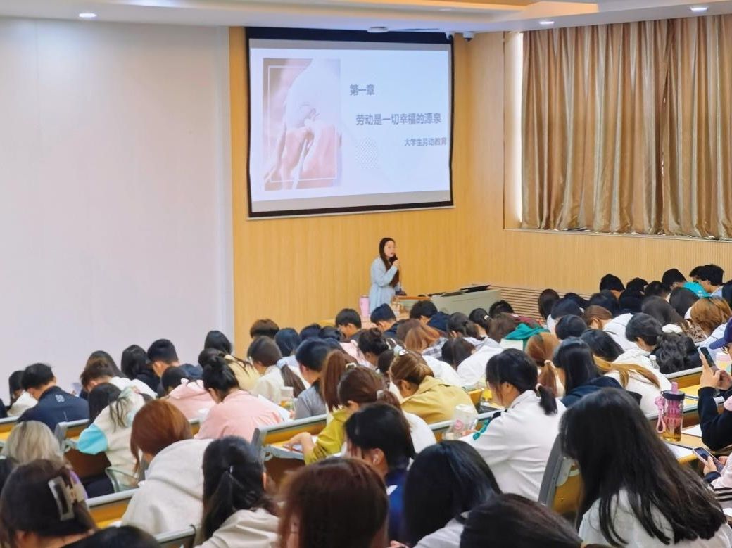 辅导员王咏琪以“劳动铸就青春,实践引领成长”为主题,阐释了劳动教育对于大学生全面发展的重要意义。她结合丰富的实际案例,从日常生活劳动、生产劳动和服务性劳动三个方面,鼓励新生积极参与校园劳动,如教室清洁、校园绿化维护等,在劳动中增强集体荣誉感和归属感;同时,倡导新生利用假期时间参与社会实践和志愿服务活动,如社区法律宣传、公益法律咨询等,将法学专业知识与劳动实践相结合,提升自身的社会责任感和实践能力。