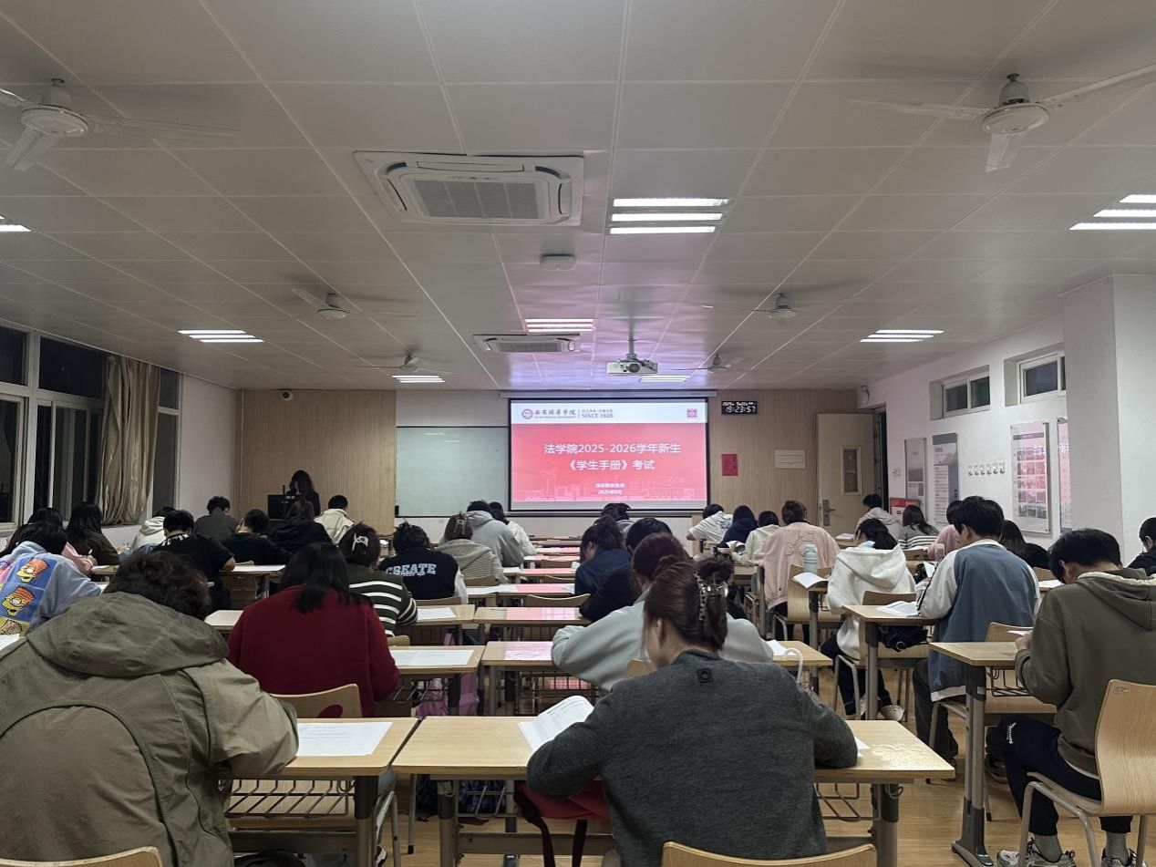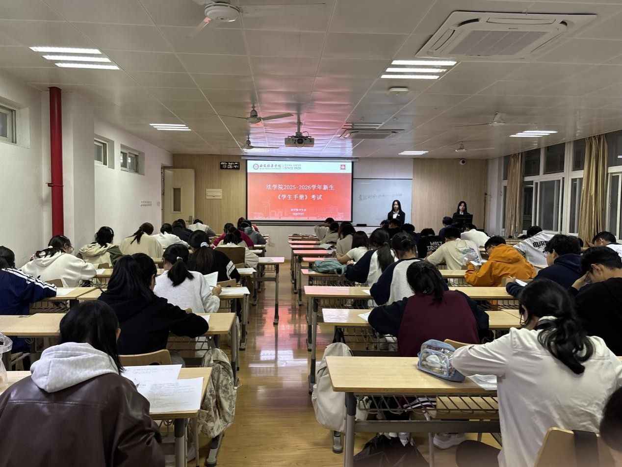 为帮助2025级新生全面了解学校规章制度,以考促学筑牢纪律意识,增强集体归属感。9月22日晚7点,我院于博远楼组织开展了新生学生手册考试。本次考试覆盖全体25级本科新生,考试过程秩序井然,同学们认真作答,展现出良好的精神风貌和严谨的学习态度。