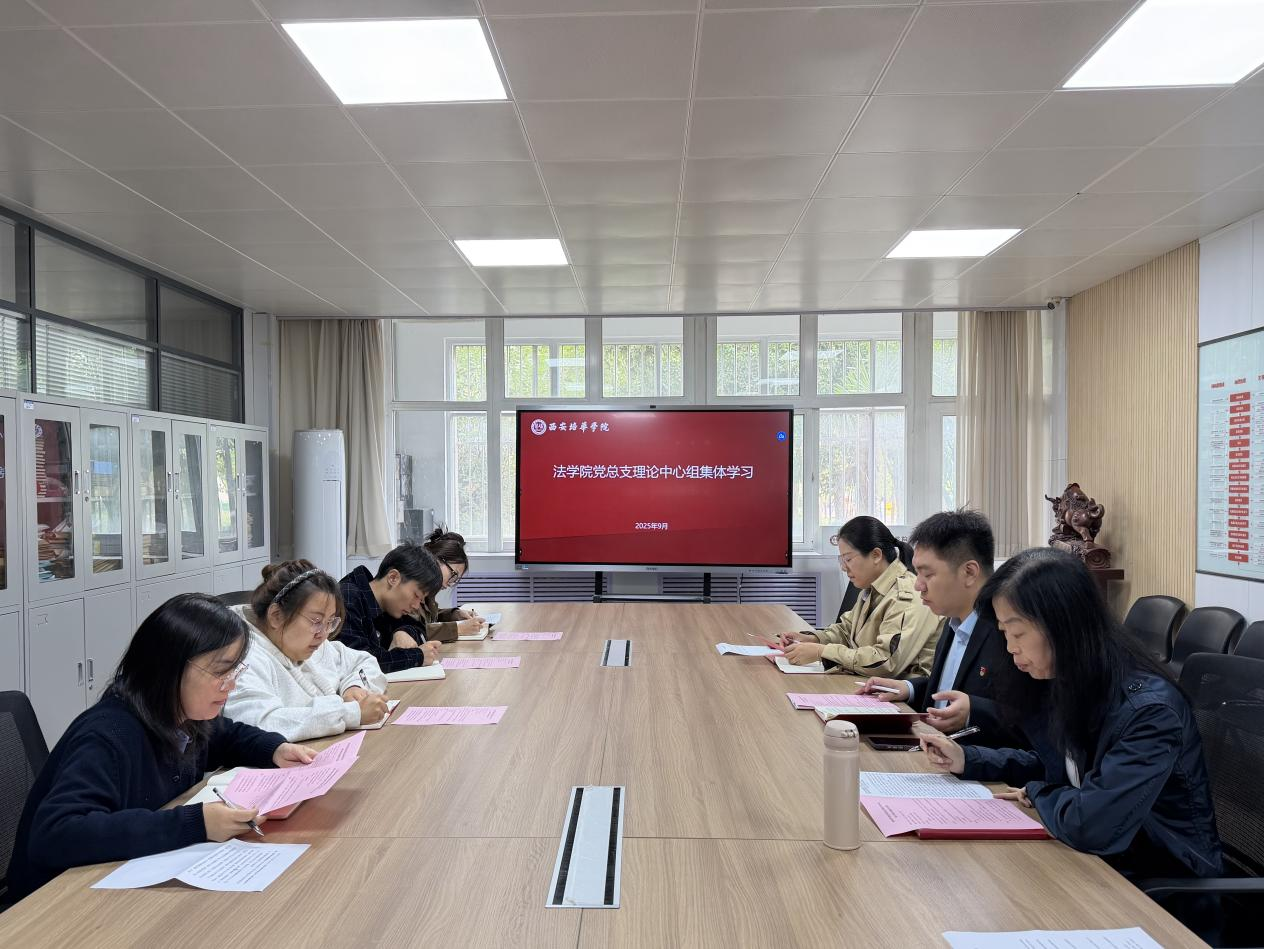 2025年9月26日上午,法学院党总支于格物楼1116会议室召开了2025年第六次理论学习中心组会议,本次集体学习由院党总支书记韩斌主持,党总支理论学习中心组成员参加了学习。