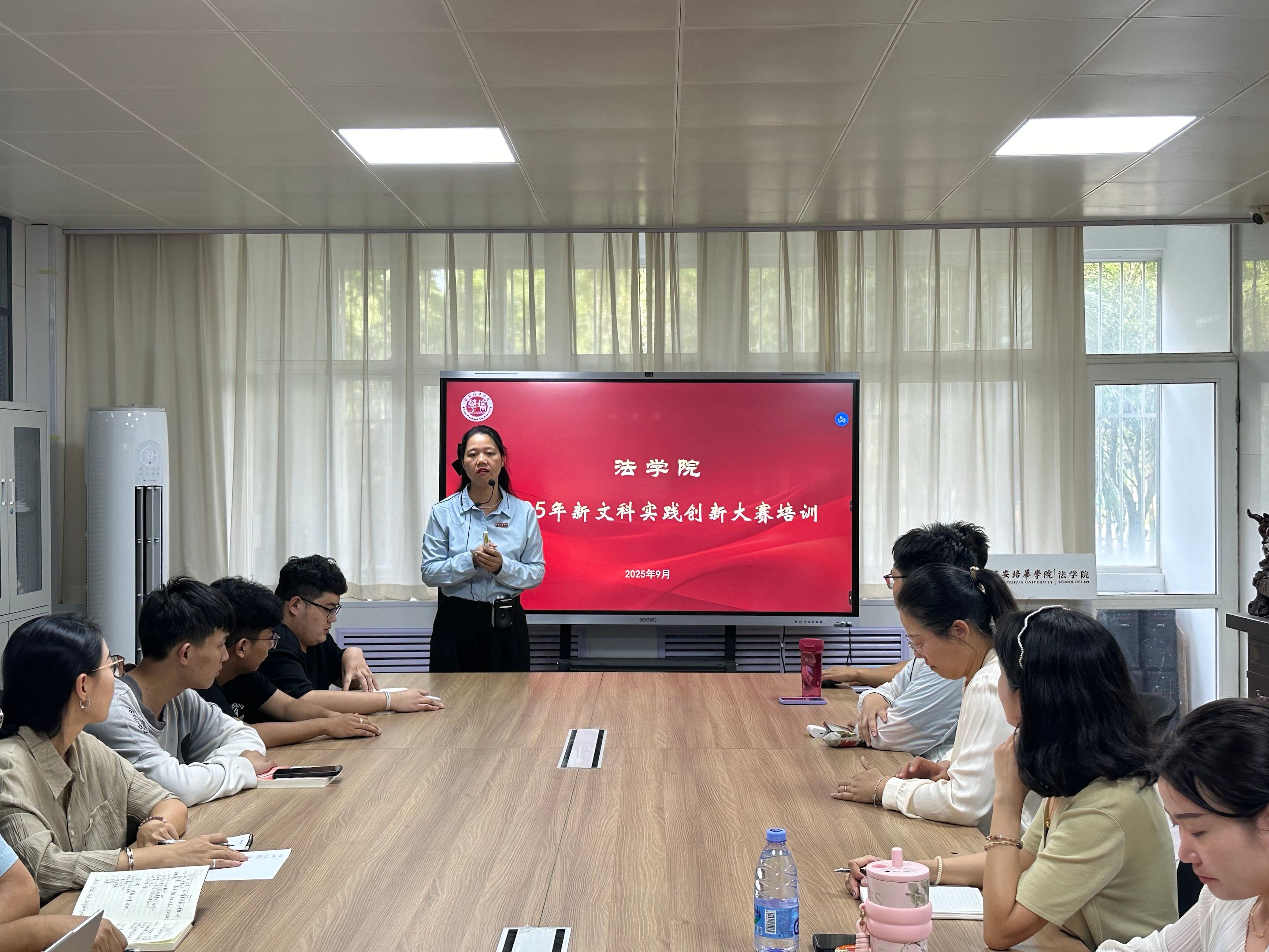 为进一步激发法学院师生参与新文科实践创新大赛的积极性,提升参赛团队的备赛水平与创新能力,2025年9月9日,法学院组织开展2025年新文科实践创新大赛赛前培训。本次培训由法学院赵洁副院长主持,特邀江凤香教授担任培训专家,法学院参赛指导教师及学生代表参与。