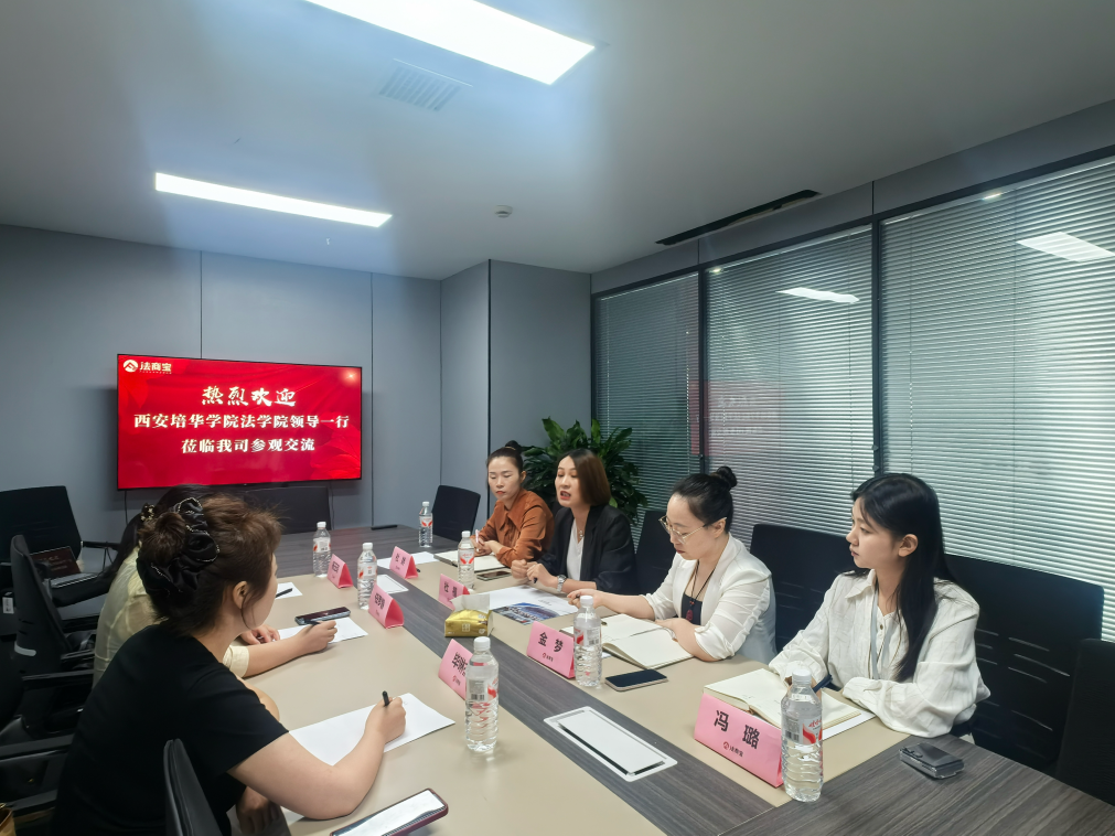 2025年6月26日上午,西安培华学院法学院理论法教研室主任罗静携同教师毕琳杰、杨玉琼一行前往陕西法商宝法律咨询集团有限公司进行访企拓岗。此次走访旨在深化校企合作,拓宽学生实习与就业渠道,促进产学研一体化发展。