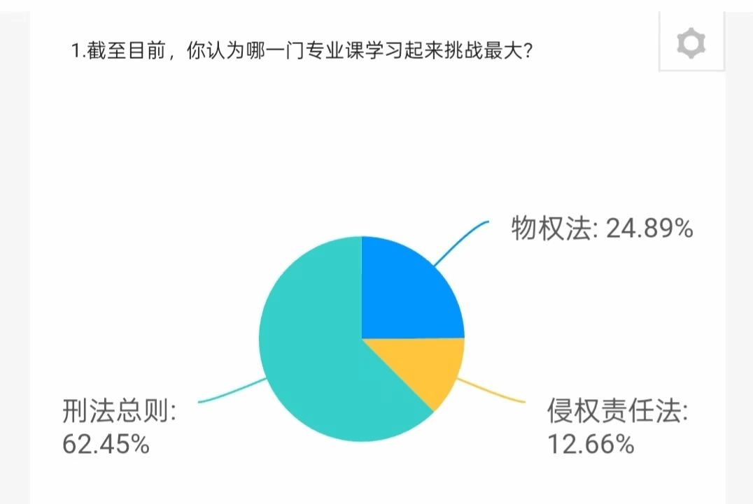 为让朋辈小课堂更贴合学生需求,会前通过问卷调查精准聚焦2024级学生在《刑法总论》学习中的核心诉求,涵盖知识理解、体系构建、学习习惯及备考指导等关键维度。调研结果清晰揭示了学生的学习困境:超六成学生认为《刑法总论》是当前最难的专业课,核心难题集中在理论抽象难以理解、知识点庞杂难以梳理成体系,且过半学生仍依赖考前突击的低效学习方式,因此对高效笔记方法与考点把握技巧有着迫切的指导需求,为朋辈小课堂的内容设计提供了明确靶向。