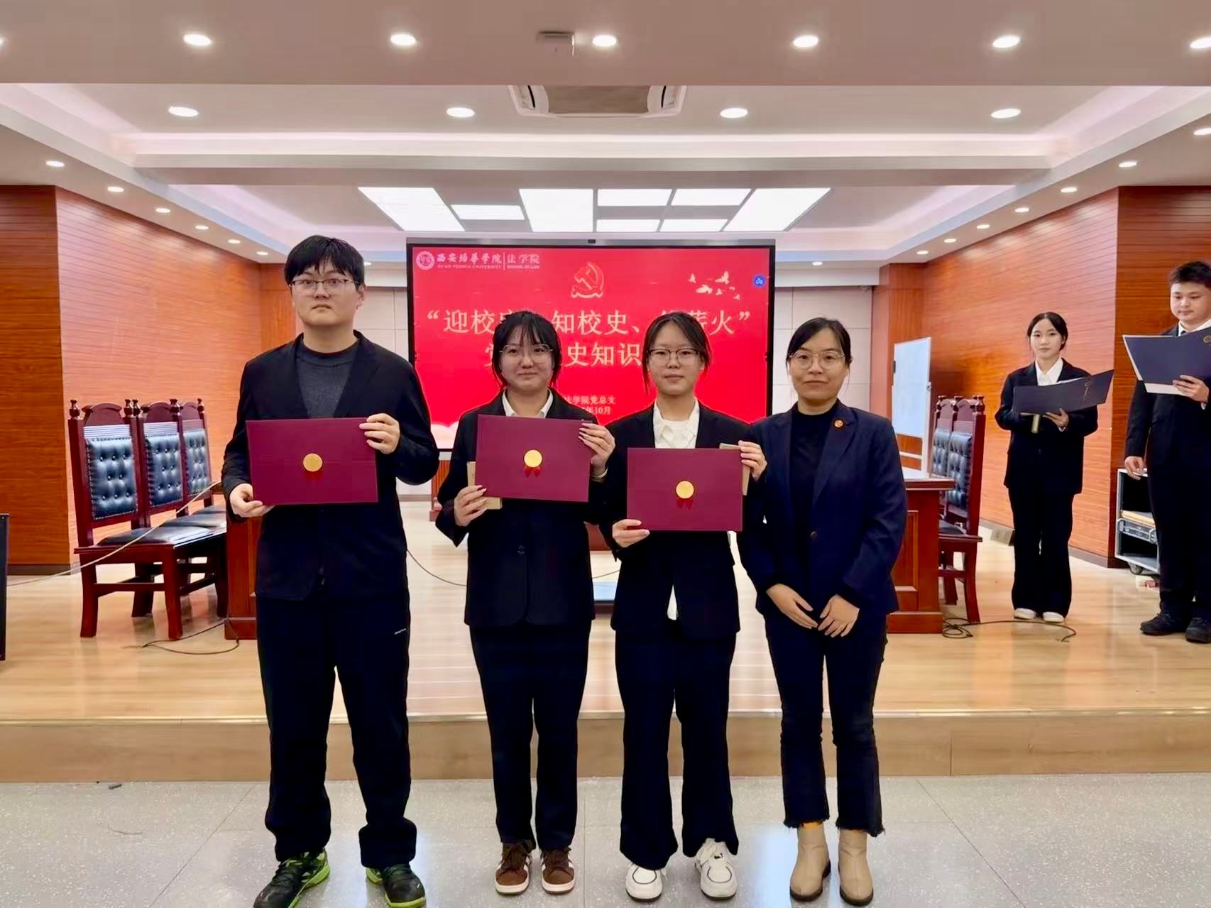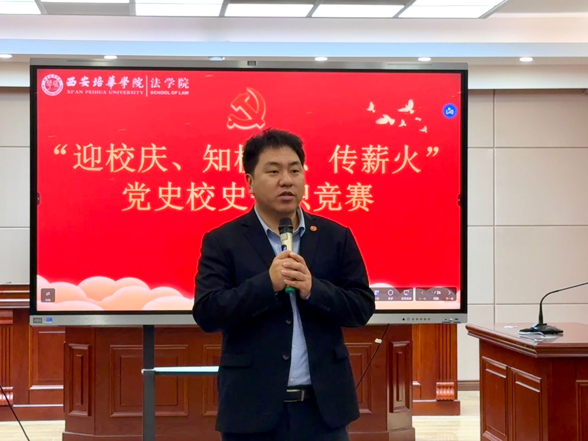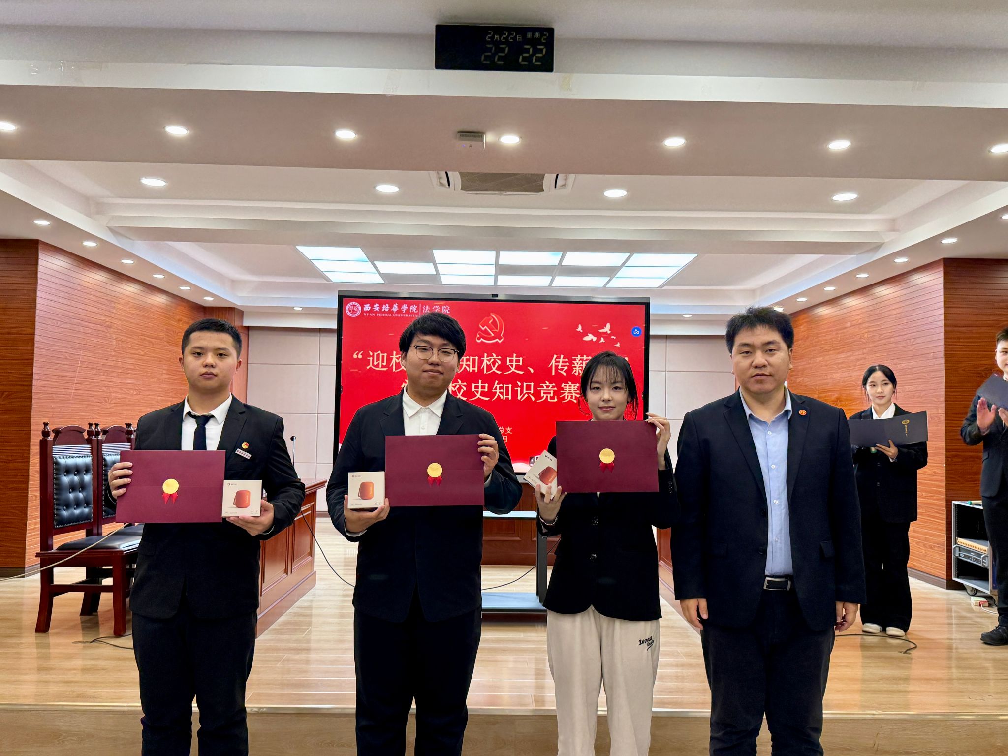 为深入学习贯彻习近平新时代中国特色社会主义思想,推动党史学习教育常态化长效化,弘扬校史文化,传承培华精神,10月22日,法学院党总支在模拟法庭举办“迎校庆、忆校史、铭传承”党史校史知识竞赛决赛。