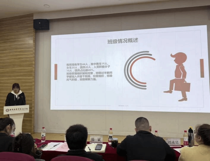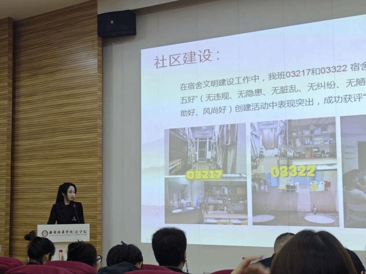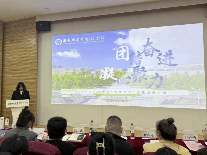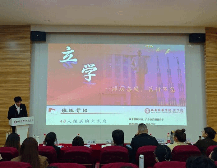 在班级创建成果展示环节,来自法学院的9个班级(2024法学(专升本)02、2023法学04、2024法学05、2023法学06、2024法学08、2024法学01、2023法学08、2024法学07、2023法学05)依次登台,通过PPT展示、视频播放及现场讲解等多种形式,全面汇报了过去一学年中“姜维之班”在班级建设、学风塑造、思想引领及实践活动等方面的丰硕成果。各班级的展示内容丰富、形式多样,充分展现了法学学子的青春风采与积极向上的精神风貌。