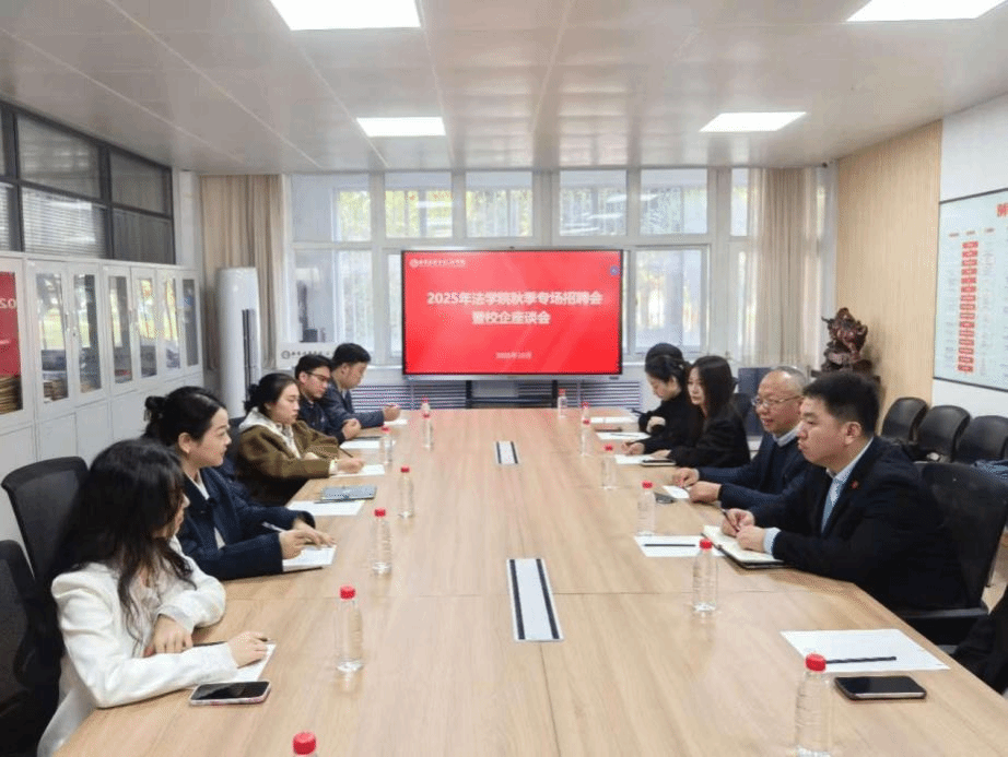 招聘会后,学院组织律所企业代表开展校企座谈会,院领导介绍了法学院党建、教学、实践、学生就业等情况,指出在提升法考通过率、考研率、考公率与学生职业规划方面仍面临挑战。面对人工智能时代的新要求,他们希望与各律所深化合作,通过多形式交流方式,共同引导学生明晰职业方向,增强就业竞争力,实现校企共赢。