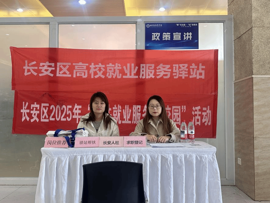 同时,为提升学生求职竞争力,长安区人力资源和社会保障局在招聘会现场设立了“高校就业服务驿站”,由专业人员为学生提供政策解读等“一对一”帮扶,学生讲解西安市人才落户、就业见习补贴、创业扶持等政策,助力毕业生顺利就业与发展。