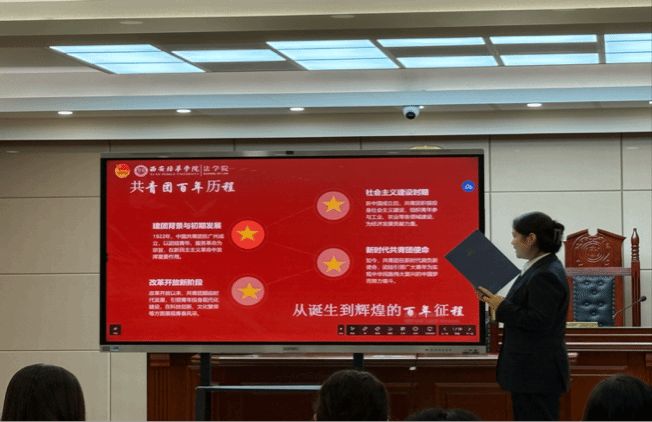 各团支部聚焦团史、校史进行讲解,从团组织号召出发,通过回溯百年前青年的无畏、诠释如今青年的担当,生动传递出法学生扎实的专业素养。各团支部通过朗诵、模拟法庭等形式充分展现了支部活力与特色。