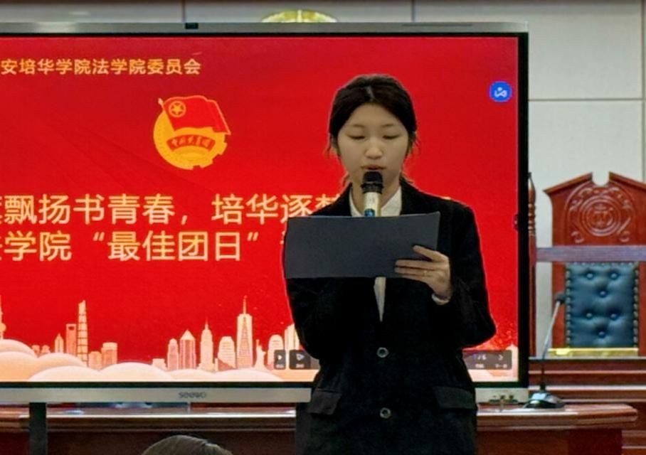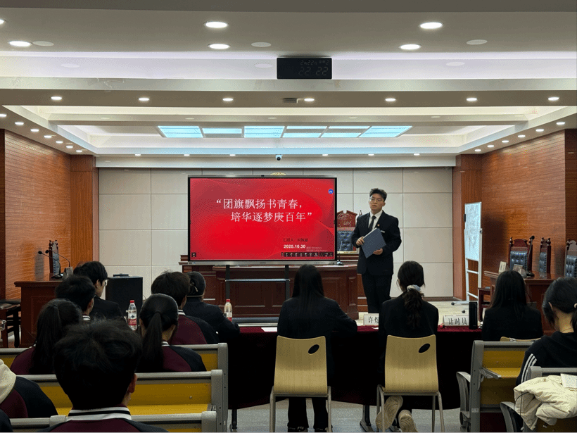 为积极响应党的二十大号召,扎实团支部组织建设,丰富团日活动,提升育人成效。法学院团委于2025年11月3日在格物楼1609B模拟法庭教室开展“团旗飘扬书青春,培华逐梦庚百年”最佳团日评比。本次活动评委由法学院团委书记董可怡、团委副书记赵玉洁、团委学生兼职副书记许煜昕、曾峰戈共同担任,大赛由团委实践创新部副部长李康文主持。