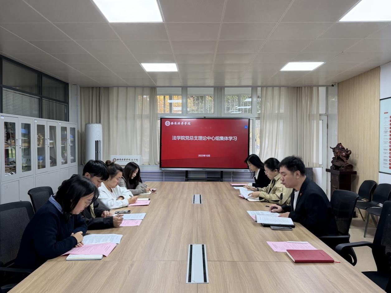 2025年11月10日上午,法学院党总支于格物楼1116会议室召开了2025年第七次理论学习中心组会议,本次集体学习由院党总支书记韩斌主持,党总支理论学习中心组成员参加了学习。