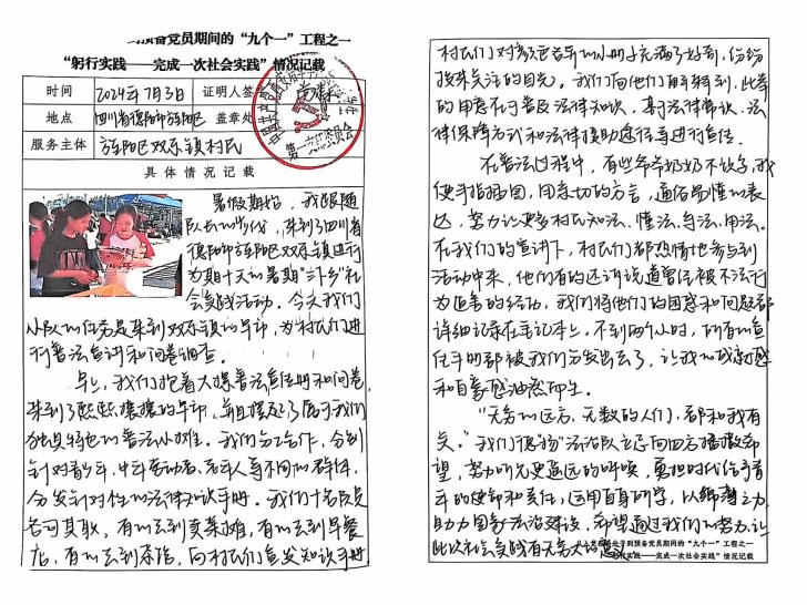 为深入贯彻落实新时代党员教育培养要求,法学院党总支以“九个一”工程为引领,聚焦入党积极分子实践能力与责任担当培育,通过构建“实践规划+实地参与+总结反思”的全过程培养体系,组织全体积极分子、发展对象和党员开展沉浸式社会实践活动。躬行实践篇意在引导青年学子从基层实践中汲取成长动力,在服务奉献中厚植为民情怀,着力培养“坚定信仰、深钻理论、扎根实践、心系群众”的新时代青年马克思主义者,为法治中国建设培育接地气、能干事的先锋力量。让我们一同领略这些优秀实践篇章的风采!