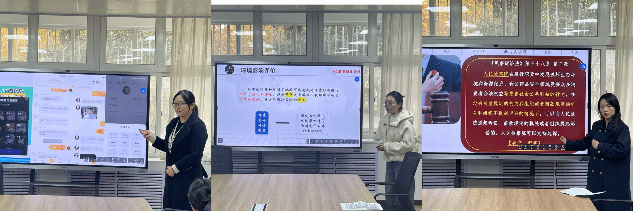 11月10日12:30,法学院第八届课堂教学创新大赛初赛在1116教室成功举行。本次比赛邀请到会计与金融学院副院长孟君、法学院副院长赵洁及法学院督导专家凌苏霞老师担任评审,周滢滢、刘杨、陈若梦三位教师同台竞技,展现教学创新风采。
