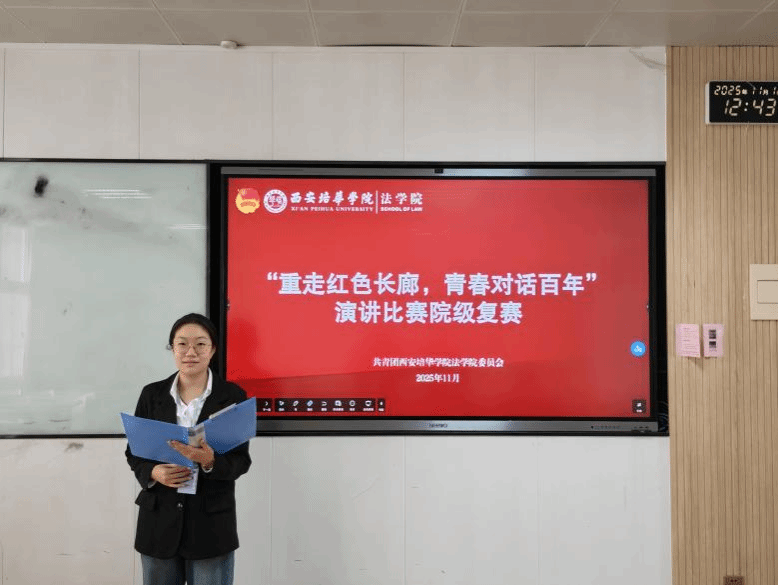为深入学习贯彻党的二十大和二十届四中全会精神,引导广大青年学子赓续红色血脉、勇担时代使命,以青春之我对话百年党史,法学院于2025年11月12日中午12:30开展“重走红色长廊,青春对话百年”演讲比赛。