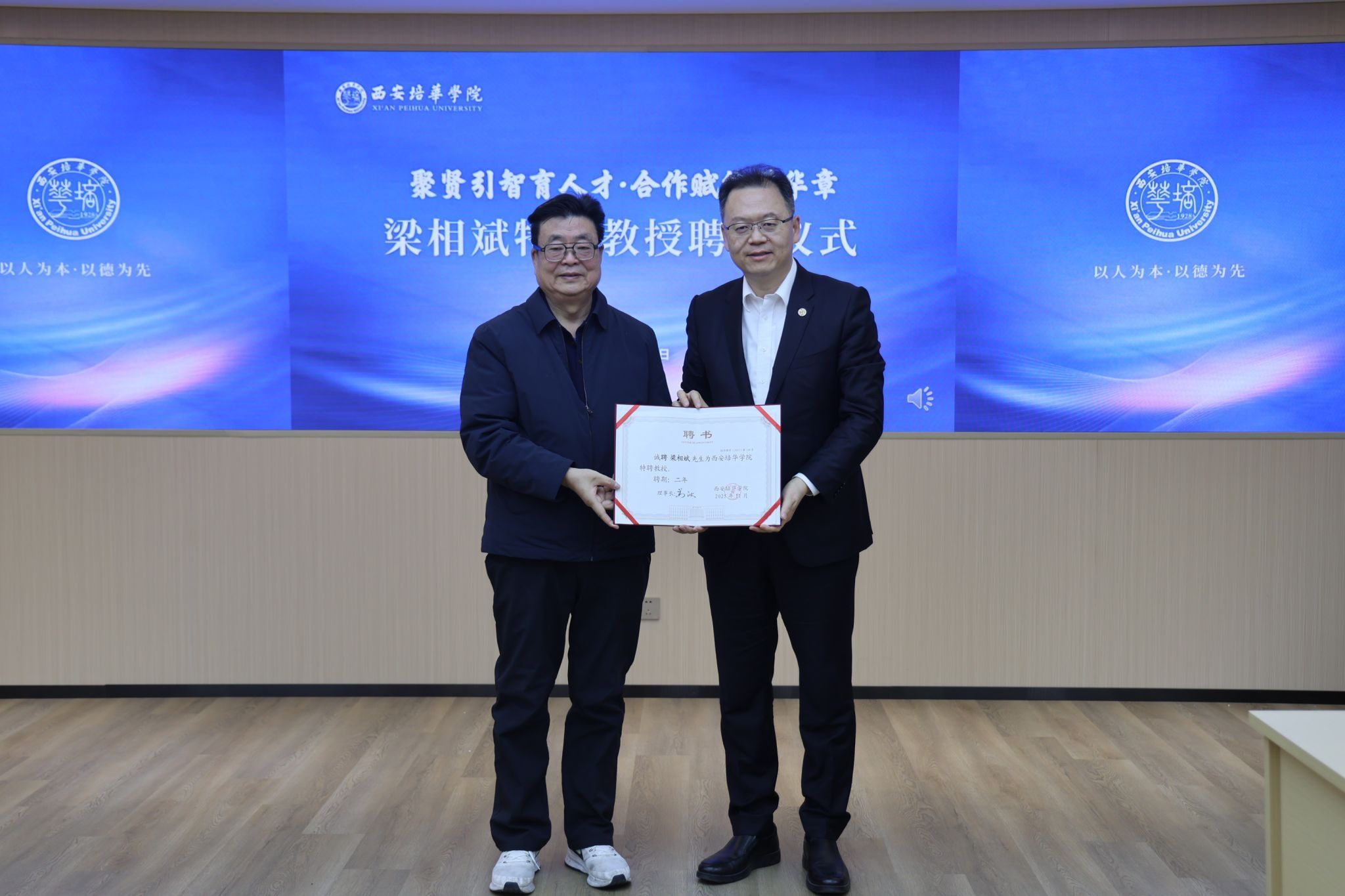 聘任仪式上,理事长姜波为梁相斌教授颁发聘书