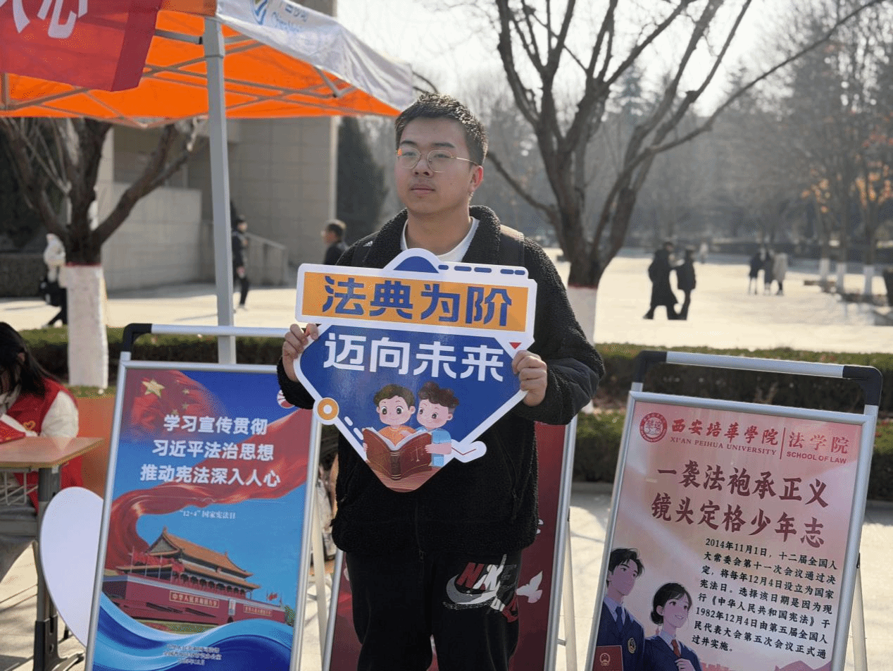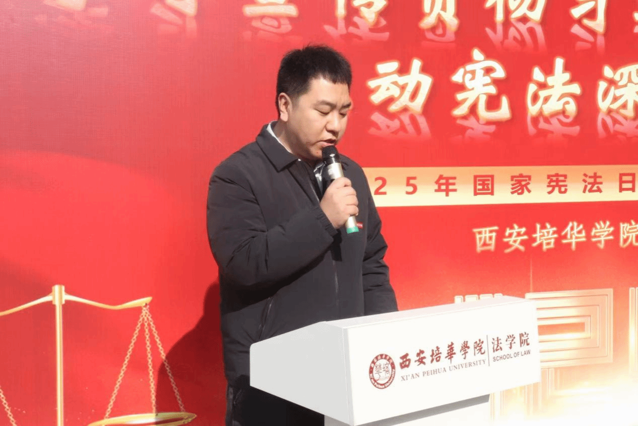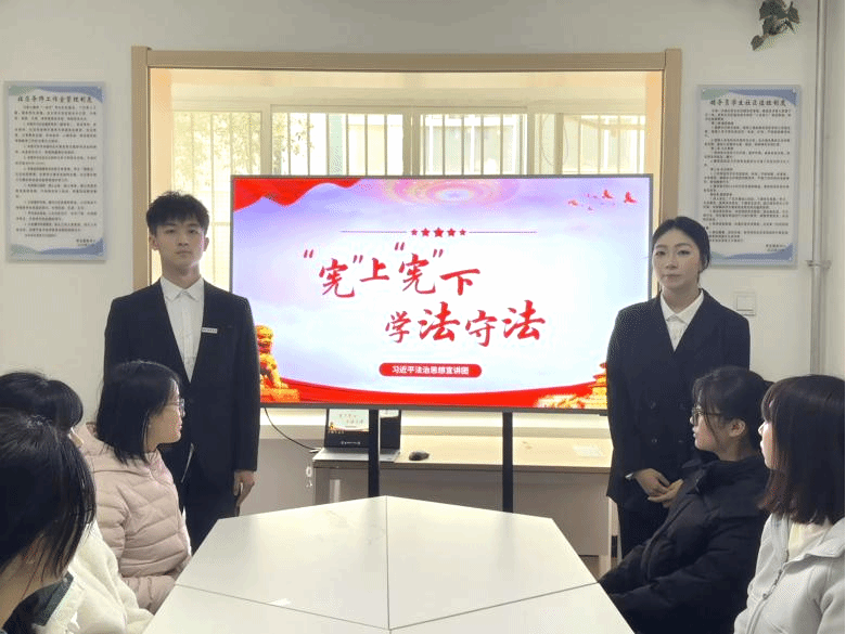 为深入宣传贯彻习近平法治思想,增强青年学子宪法意识,提升法治素养。2025年12月4日中午,在第十二个国家宪法日来临之际,习近平法治思想宣讲团于明德社区3号楼成功举办“‘宪’上‘宪’下 学法守法”宪法主题宣讲活动。