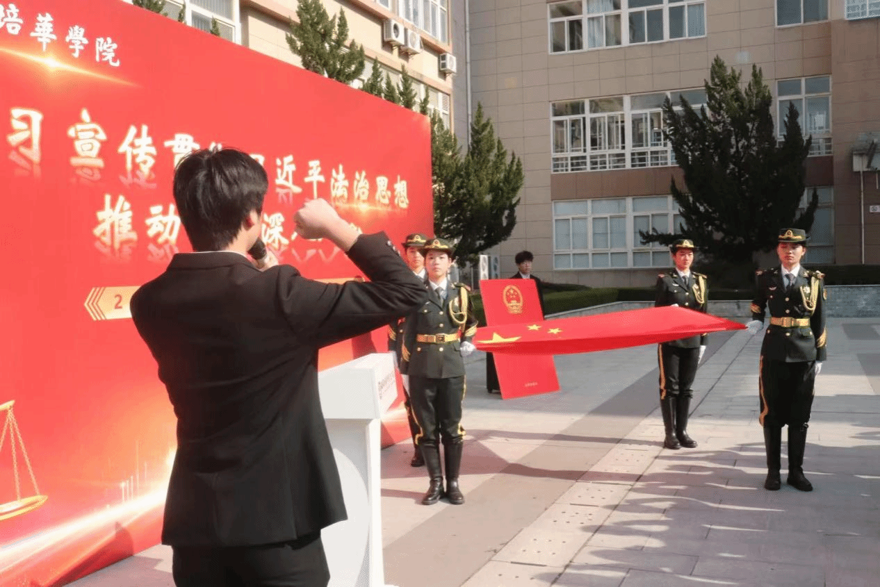 2025年12月4日12:20,为进一步弘扬宪法精神,维护宪法权威,营造尊法学法守法用法的校园氛围,法学院在格物楼西广场开展宪法宣誓活动。