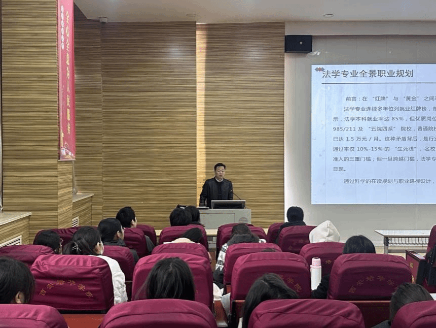 为切实推动国家关于高校对大学生就业政策的落地生根,助力学生树立科学就业观念、增强职业规划能力、提升综合就业竞争能力,法学院于12月3日14:00-16:00,分别在博远楼J102、格物楼J202阶梯教室开展职业规划与就业指导专题讲座。本次讲座由西北政法大学杨强教授、北京市盈科(西安)律师事务所林安律师主讲,2024级全体本科生参加。