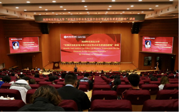 孙文琳副院长、Kevin Thompson院长分别致开场辞,对该讲座的举办表示祝贺,希望同学们能够通过讲座开拓国际视野、积极了解专业提升项目、规划职业发展方向。随后,Grace Menze女士作了关于“识别并分析业务交易中会计等式对各要素的影响”的讲座,同时介绍了美国明尼苏达大学克鲁克斯顿分校会计课程的学习重点、教学模式、学分转换等内容,希望更多中国学生能够投入到会计专业学习中。现场学生就会计专业在美国的就业前景、在美国取得相关证书并参加留学课程和项目后的认证情况、CPA和CMA考取等相关问题踊跃提问,Grace Menze女士耐心解答。