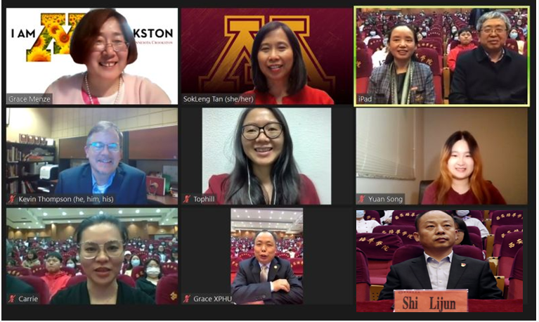 4月23日上午10点,美国明尼苏达大学克鲁克斯顿分校“识别并分析业务交易中会计等式对各要素的影响”讲座在我校图书馆报告厅成功举办,讲座以网络视频连线的形式开展。美国明尼苏达大学克鲁克斯顿分校艺术、人文与商学院院长Dr. Kevin Thompson、美国明尼苏达大学克鲁克斯顿分校全球项目和国际学生服务中心主任Ms.Sok Leng Tan、美国明尼苏达大学会计课程讲师、注册会计师Ms. Grace Menze等美方嘉宾在线出席。西安培华学院会计与金融学院院长赵选民、西安培华学院会计与金融学院副院长杨仕鹏、西安培华学院会计与金融学院副院长孙文琳以及会计与金融学院的200余名学生参加了该讲座,讲座由西安培华学院国际交流中心主任王鹏主持。