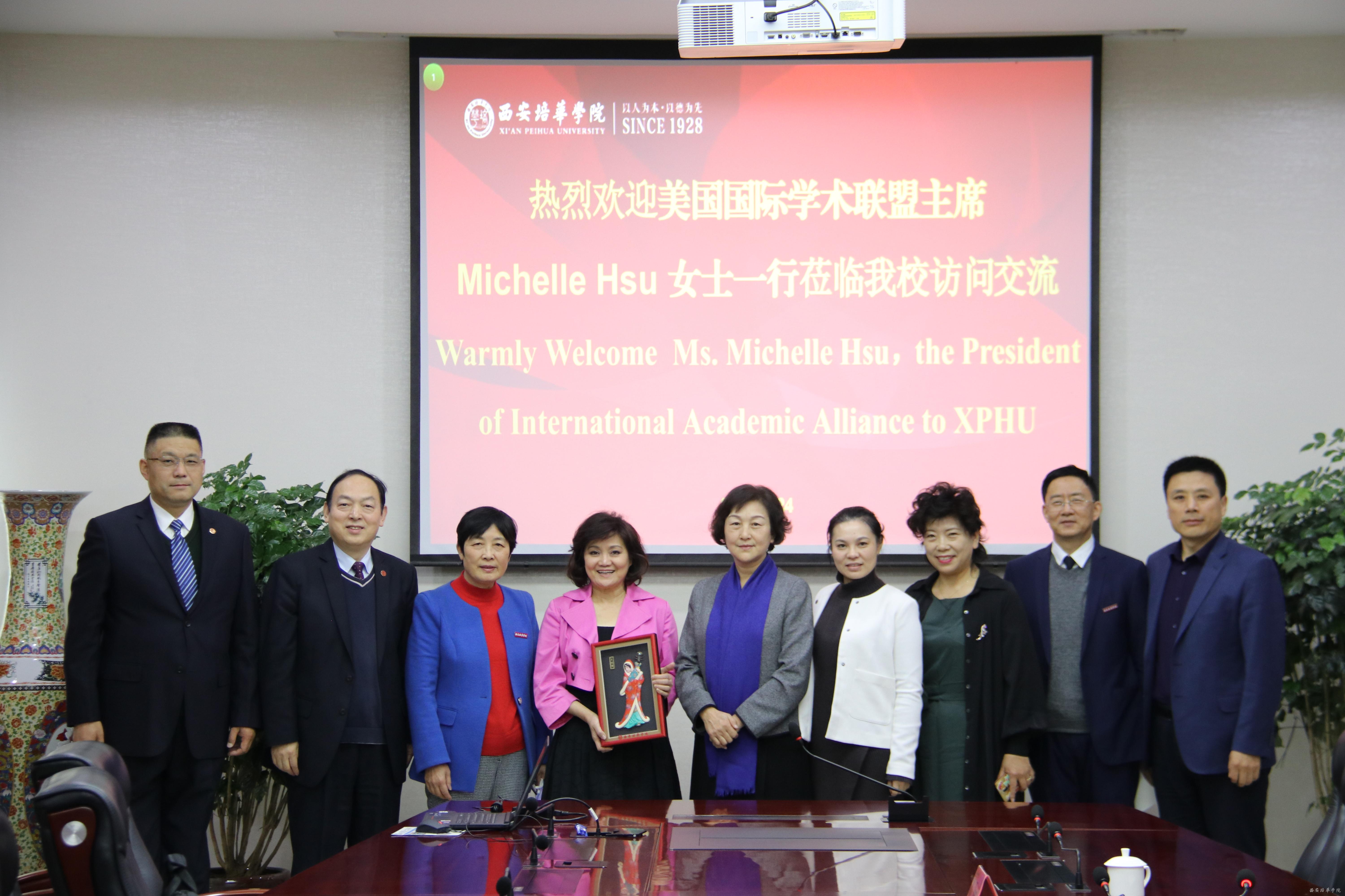 24日上午,美国国际学术联盟(IAA)主席Michelle Hsu女士、IAA中国伟东职膺教育中心主任姚远、陕西丝路融合投资集团医疗院长&博士高宏杰、伟东职膺西安教学中心李叔峰莅临我校访问交流。我校副校长刘越莲、副校长于国亮、国际交流中心主任王鹏、医学院常务副院长王平安、医学院护理系主任化前珍、医学院药学系主任李元亲切接待了来宾一行。