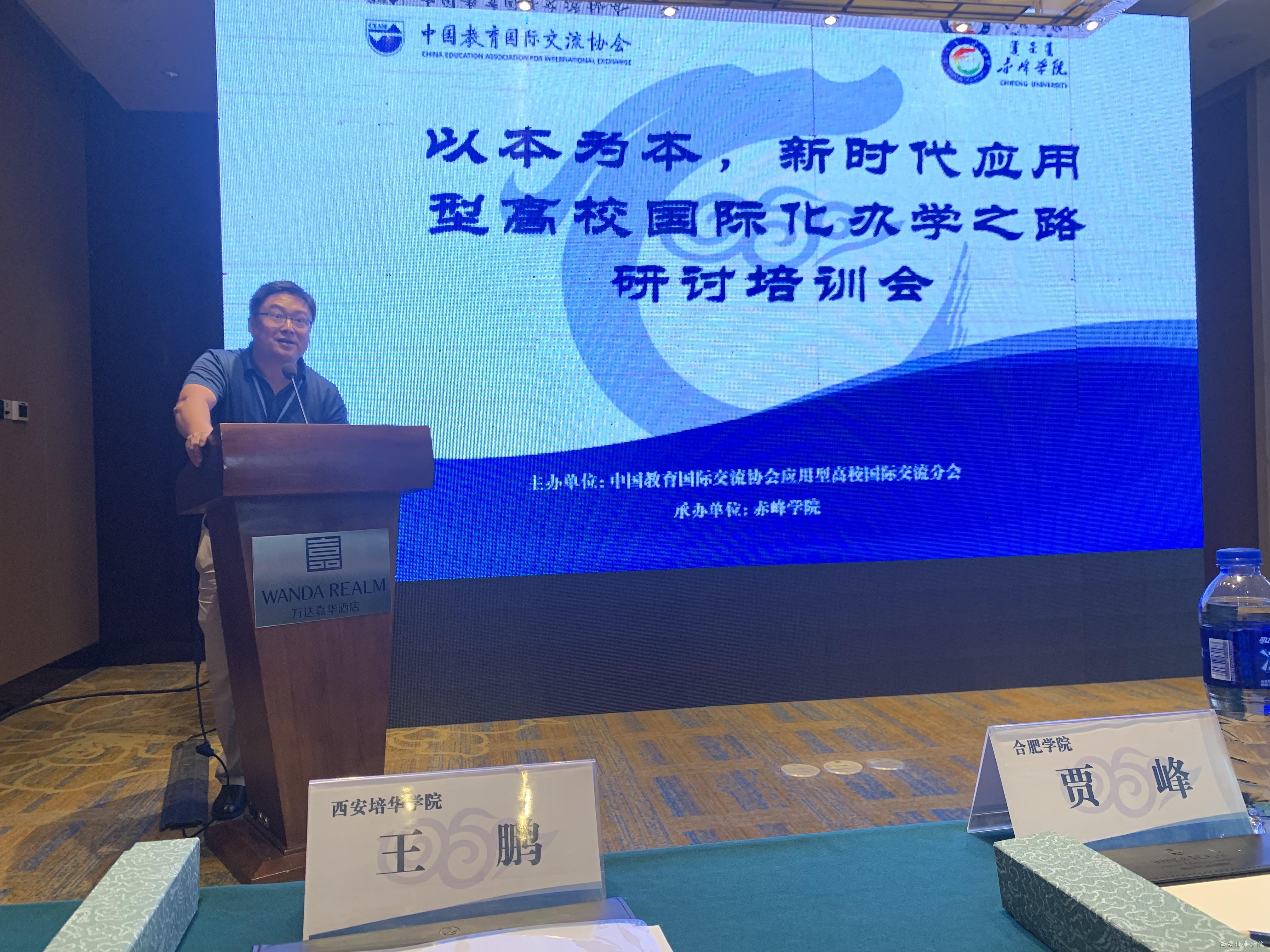 8月21日至8月23日,“以本为本-新时代应用型高校国际化办学之路”研讨培训会在内蒙古赤峰学院顺利召开。本次研讨培训会对民间教育对外开放的新挑战和新任务、一带一路教育行动落实计划、现阶段中外合作办学的申请流程、质量监管、评估与发展等方面工作进行专题培训。我校国际交流中心主任王鹏副教授参加了此次研讨会并作精彩汇报。