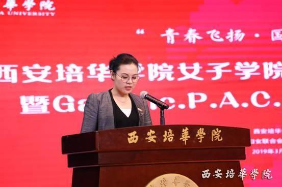 2019年3月15日下午14:15在西安培华学院大学生活动中心举行西安培华学院女子学院2018级开学典礼暨Gap lnc.P.A.C.E.项目启动仪式。本次会议由我校副校长刘越莲主持。