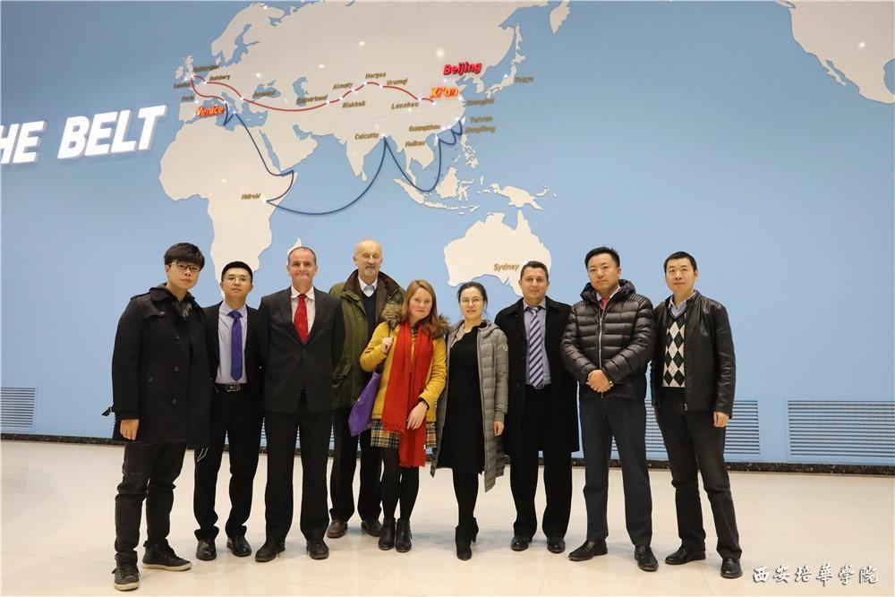 11月29日下午,2018“一带一路“语言教学与科学论坛代表团到我校交流访问。该代表团由“一带一路“语言教学论坛主席、””南欧中国友好协会主席 Jonathan Dykes、英国国家计算教育中心全球总经理 Allan Norton、全球语言测评Language Cert全球发展部主管 Nikos Pylarinos、英国文化教育协会ELTons负责人 Rebecca Maher、英国国家计算教育中心东亚办公室负责人陈禹、西安市科协国际部巡视员李超江、西安设计联合会副秘书长、国际青年绿色设计创新联盟秘书长苏鹏组成。我校副校长刘越莲、国际交流中心主任王鹏、人文与国际教育学院常务副院长梁蕊亲切接待了来宾一行。