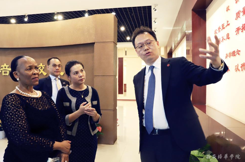 座谈会中我校姜波理事长对金砖国家工商理事会南非代表团一行的到来表示了衷心的欢迎,他首先介绍了学校的办学历程、占地面积、专业设置体系以及女性教育的发展,他在座谈的过程中提到两个关键词“国际交流”与“女性教育”。他表示西安培华学院是西北地区最早从事女性教育的学校,也是最早开展海外交流的陕西民办高校,学校一直致力于国际间的交流与合作,先后已经与40多个国家近百所高校建立了友好的合作关系,但是与非洲国家的合作今天是第一次。除此之外,他着重的讲解了我校在女性教育方面的成绩,他提到培华在过去的90年里一直重视女性教育的发展,从免费让底层女性掌握技能到今天的打造陕西省唯一一个男女平等的平台,培华一直在用自己力量为国家的女性教育做贡献。