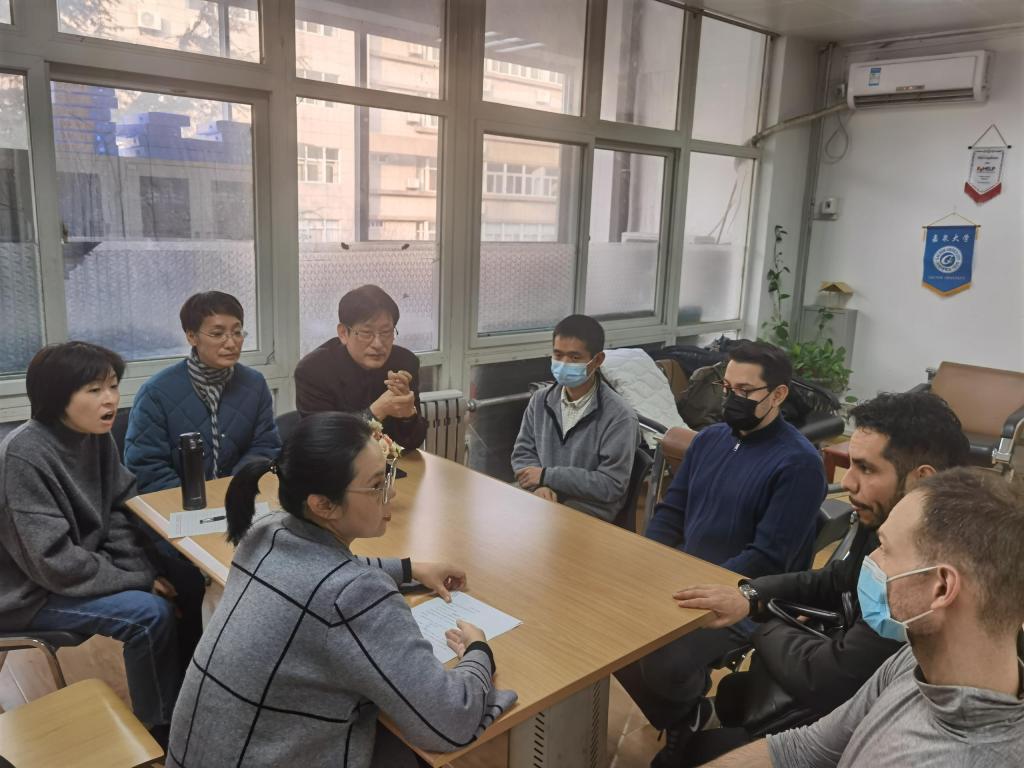 1126日下午,国际交流中心召开了外籍教师管理工作会议,根据当前涉外工作规定和形势,针对思想意识形态、安全与稳定、疫情与健康保健、教学评估与反馈等工作提出新的要求,与专业对接人及外籍教师们进行了交流讨论。