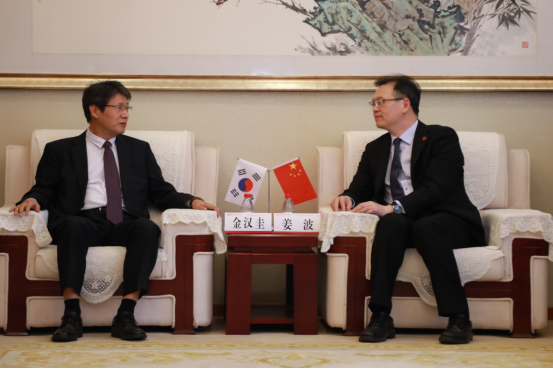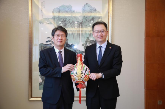 4月27日上午,大韩民国驻西安总领事馆金汉圭总领事、大韩民国驻西安总领事馆魏秀姬领事等一行4位莅临我校交流访问。我校理事长姜波、副校长刘越莲、国际交流中心主任王鹏、建筑与艺术设计学院常务副院长徐莹、韩国籍教授崔圣伯陪同参观并座谈。