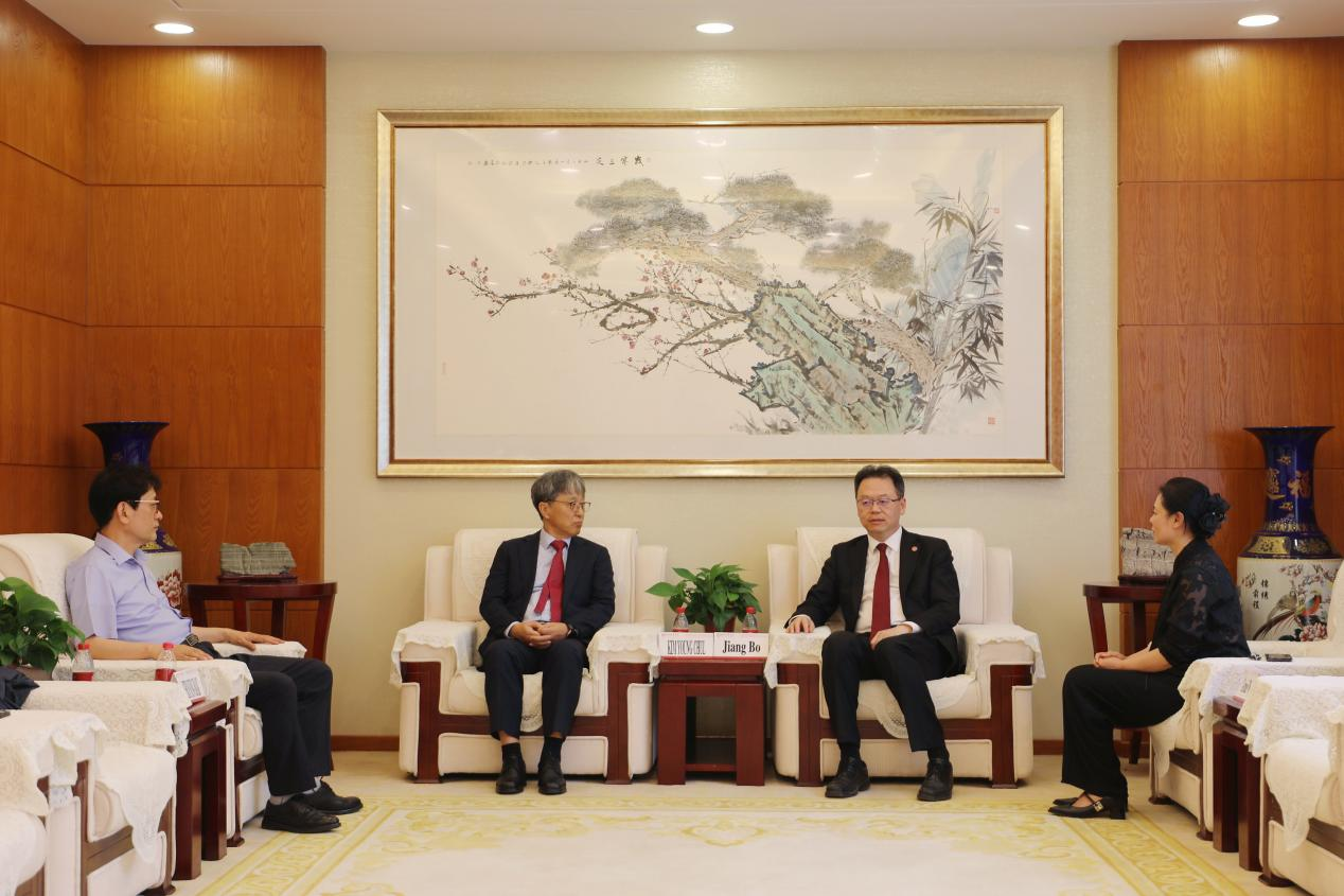 5月14日下午,韩国启明大学社会科学院院长金荣铁教授莅临西安培华学院交流访问。学校理事长姜波、国际交流中心主任王鹏、东北亚经济研究所所长崔圣伯教授陪同参观并座谈。