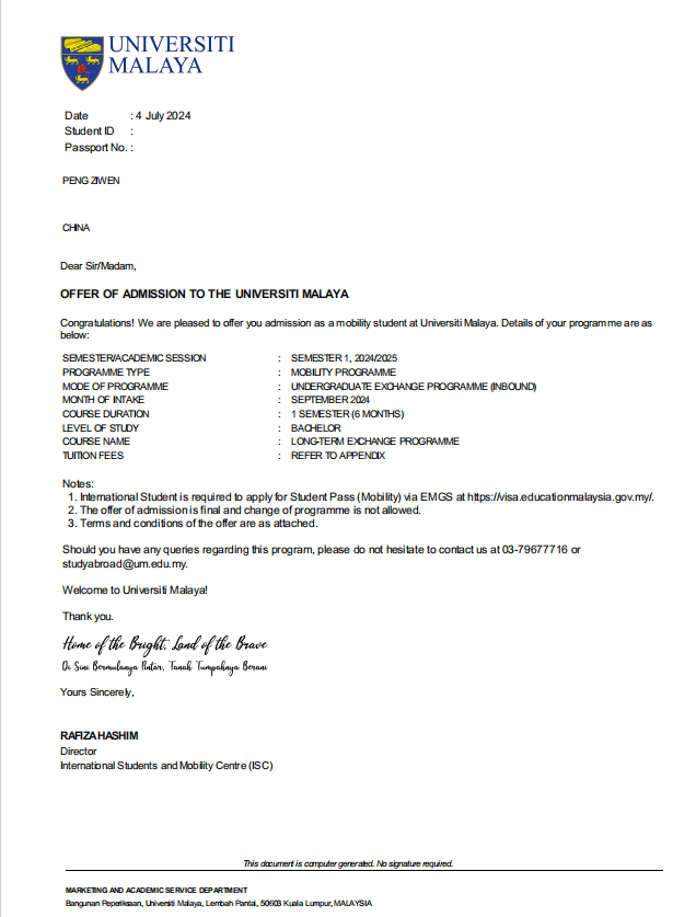 【喜报】学校三名学子入选2024年秋季马来亚大学交换生项目