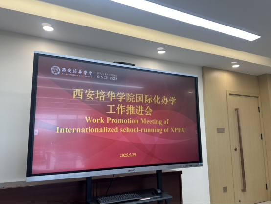 5月29日,西安培华学院国际交流中心召开国际化办学工作推进会,全面部署下一阶段国际化建设工作。会议围绕"提升国际化办学水平、打造双语特色校园"的总体目标,制定了系统化的工作方案。西安培华学院国际校长李华教授、国际交流中心全体成员及各二级学院国际化项目专员参会,会议由国际交流中心主任王鹏主持。