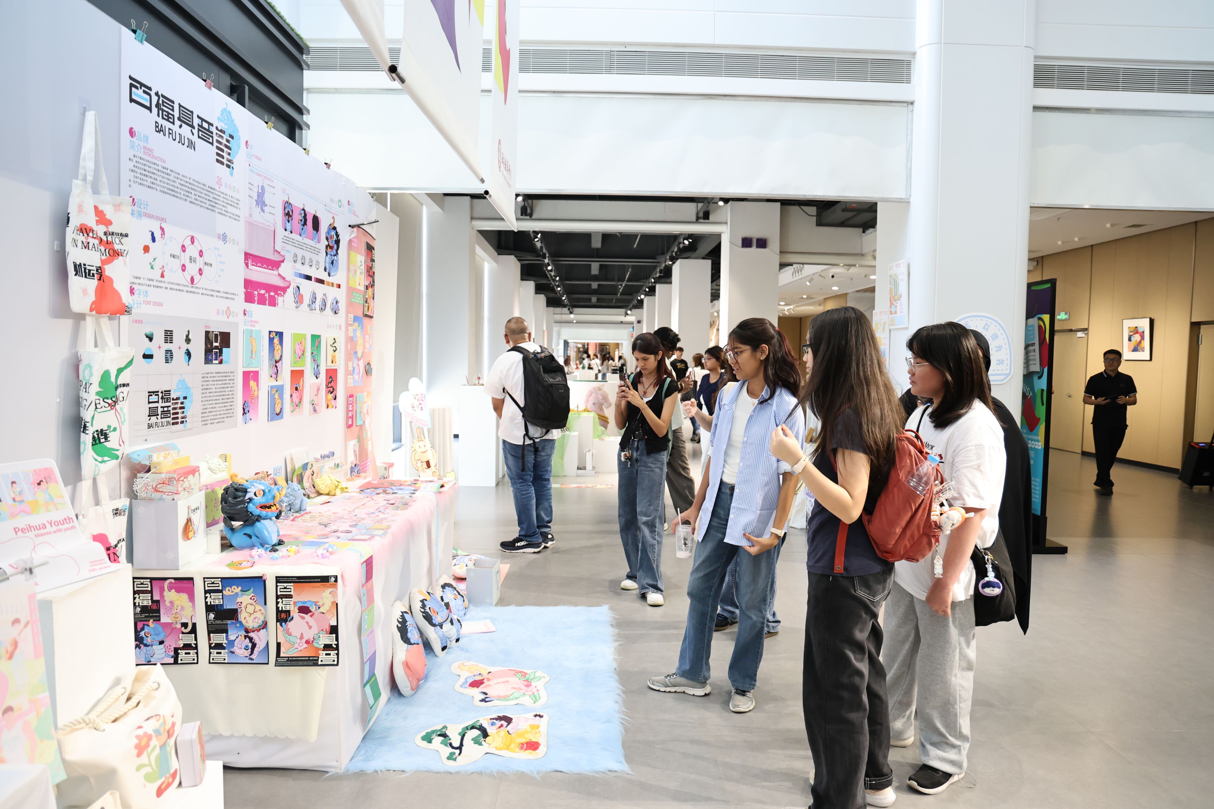 访问期间,代表团在校方陪同下参观了学术交流中心与培华艺术馆。学术交流中心陈列了传媒与设计学院2025届优秀毕业设计作品,涵盖视觉传达设计、工艺美术、服装与服饰设计等多个专业,获得新方师生高度评价。艺术馆展出的漆艺作品与甲骨文展览,也彰显了西安培华学院的文化底蕴与专业特色。