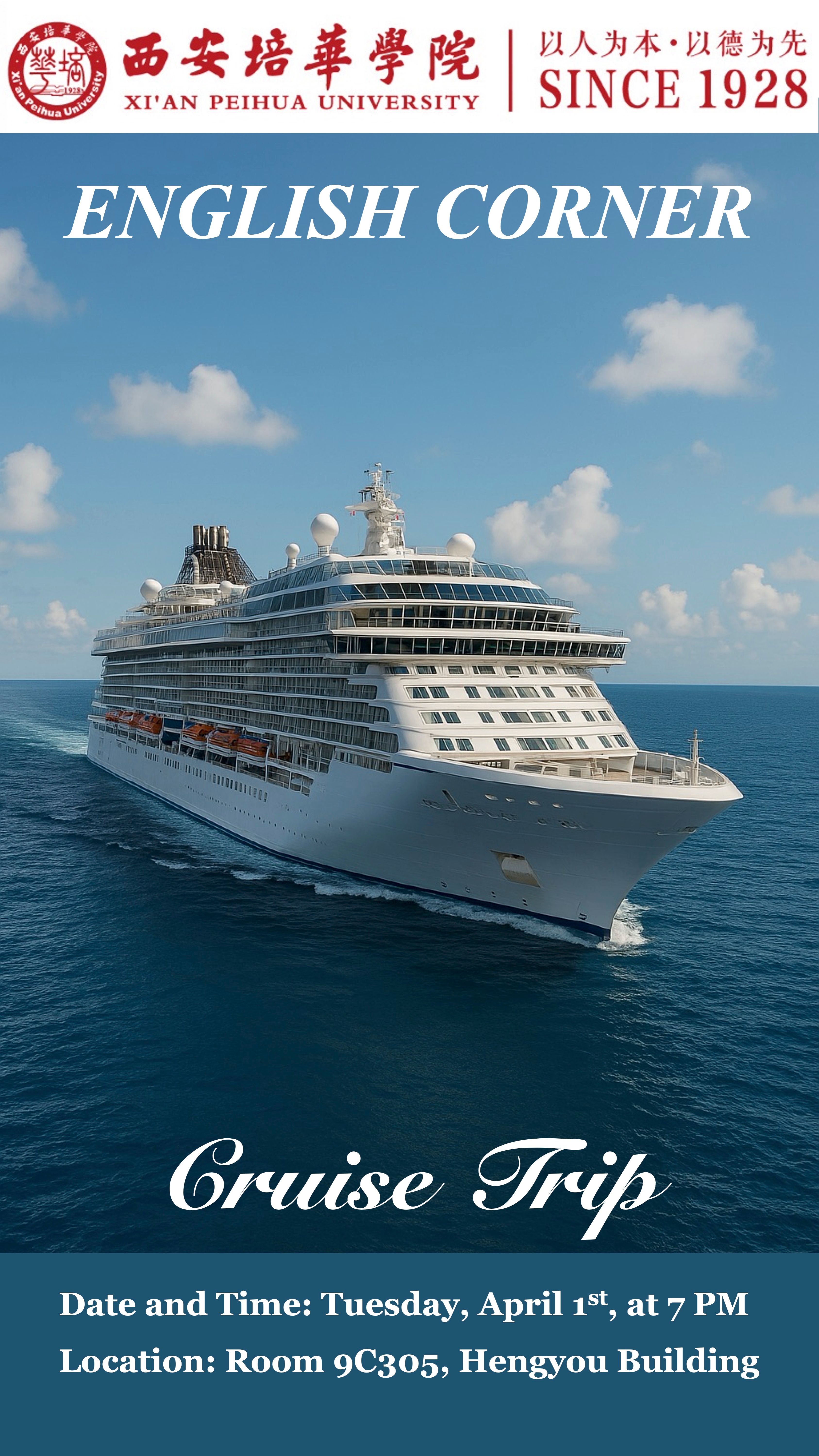 Get ready for our 6th English Corner happening on Tuesday, April 1st, 2025, in 9C305, Hengyou Building!