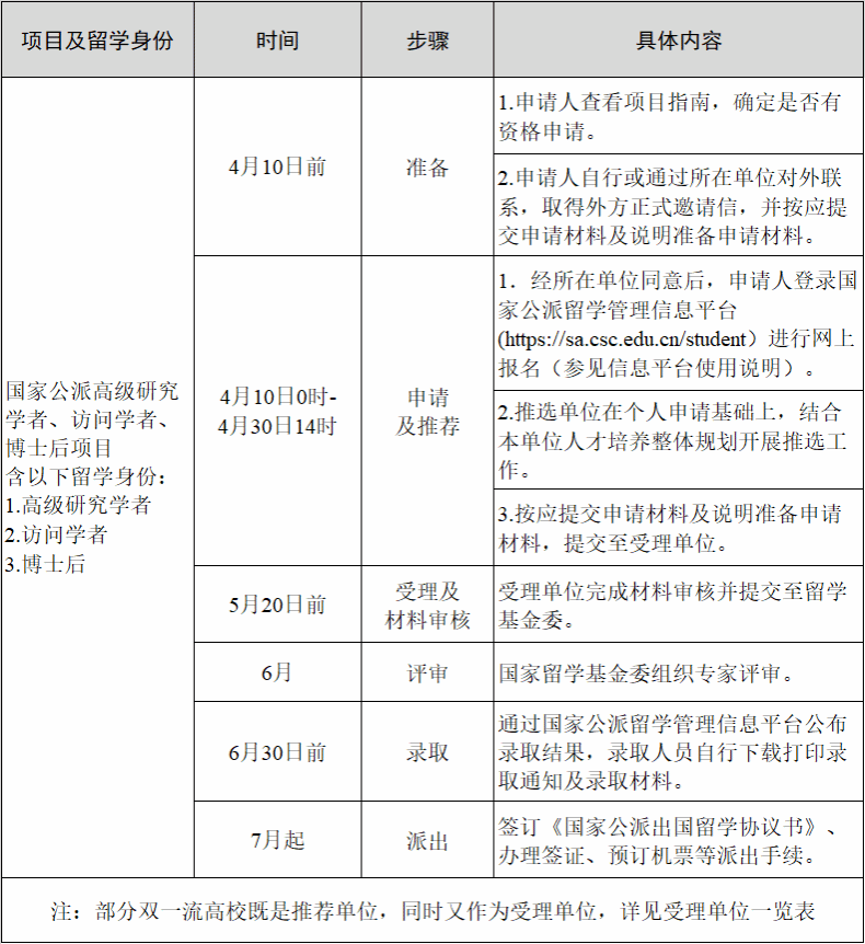 申请人应在此期限内登录国家公派留学管理信息平台(https://sa.csc.edu.cn/student)进行网上报名,按照《应提交申请材料及说明》准备申请材料并提交至所在单位审核。