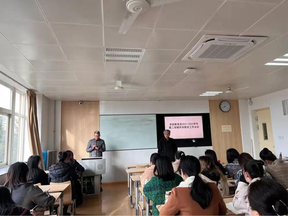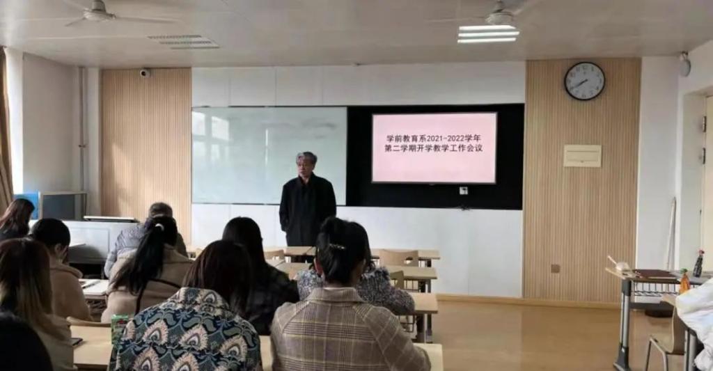 2022年3月4日西安培华学院人文与国际教育学院学前教育系在1301室召开2021-2022第二学期开学教学会议,参加本次会议的领导有人文与国际教育学院学前教育系主任兼专业带头人刘迎接教授、学前教育系副主任栾博强、郭宇涵,会议由学前教育系副主任栾博强主持,学前教育系全体教师参加本次会议。