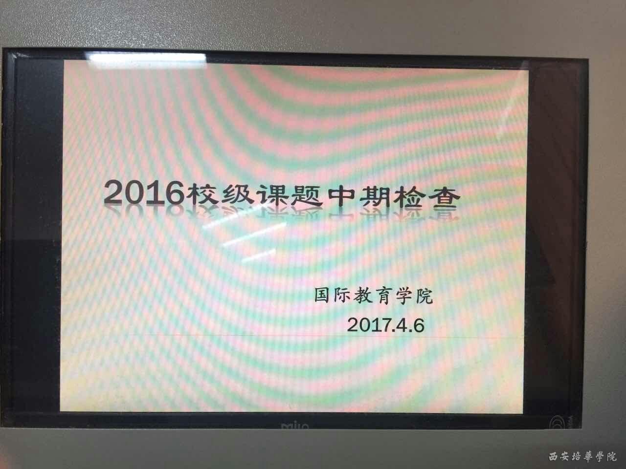 为了进一步加强教师科研建设,促进科研成果顺利完成,充分掌握已立项项目的进展程度和阶段性成果,督促项目负责人抓紧推进课题研究并如期结项,国际教育学院积极响应科研中心所发文件,学院按照要求于4月6日下午在1306教室对我院2016年度一般项目立项的老师进行中期检查。参与此次评审的专家有西安培华学院副校长刘越莲教授、英语专业带头人甘世安教授、日语专业带头人刘建强教授和国际交流中心主任王鹏老师。