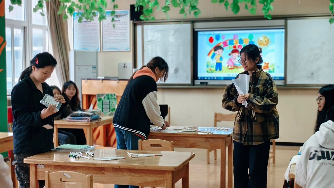 李林娜老师在实践过程中全程巡回指导,针对各小组的策划方案提出优化建议,如“为小班幼儿设计自理比赛时,可搭配儿歌降低操作难度”。这场以“赛”为载体的实践课,不仅让学生深化了对幼儿生活教育的认知,更在实操中提升了活动组织与现场引导能力,是“理论联系实际”育人理念的生动体现。