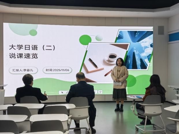 李蓉儿老师以《大学日语(二)》为载体,引入互动式学习与技术融合教学模式,通过小组讨论、角色扮演及多媒体辅助,激发学生的学习热情,同时强化跨文化交际能力的培养,以适应新时代教育的需求。