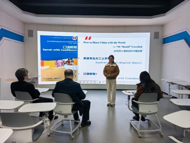 徐楚媛老师在《口语教程3(Speak with Confidence)》课程展示中,创新使用“3C Model”(Concrete具体性的、Cultural文化性的、Connective连接性的)引导学生生动讲好中国故事,提升学生的跨文化交流能力和传播中国文化的热情。