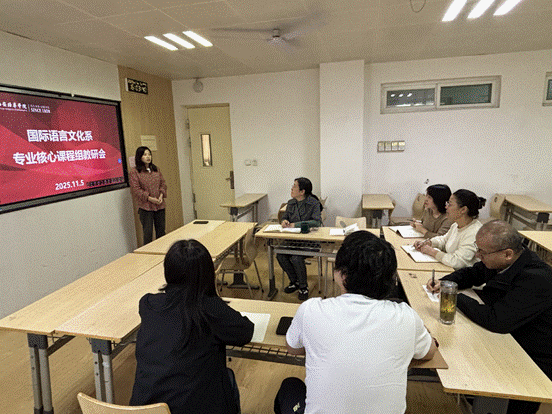 2025年11月5日,国际语言文化系英语专业核心课课程组在1402教室召开翻译教学专题研讨会,以 AI 技术与翻译教学融合为核心,探索提升教学实效与学生专业竞争力的新路径。会议由乔彦娜老师主持,国际语言文化系主任李建勇和全体核心课教师共同参与。